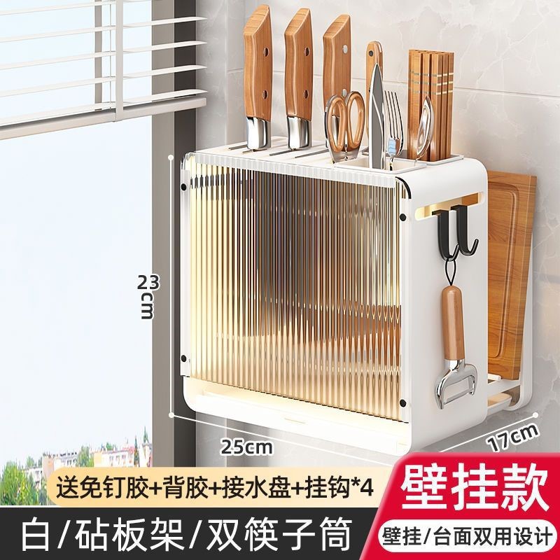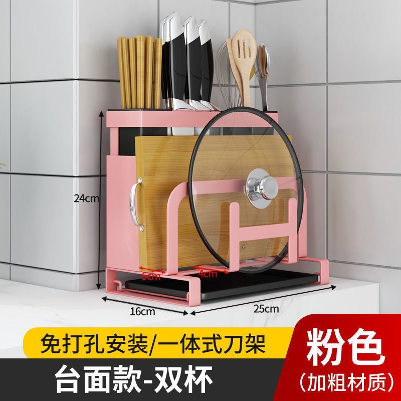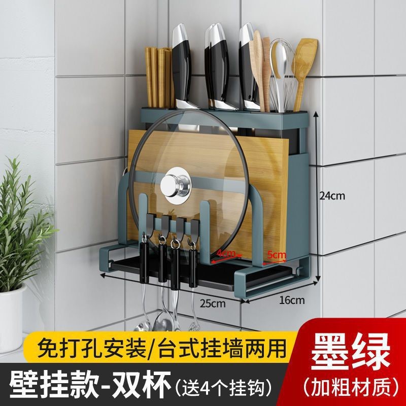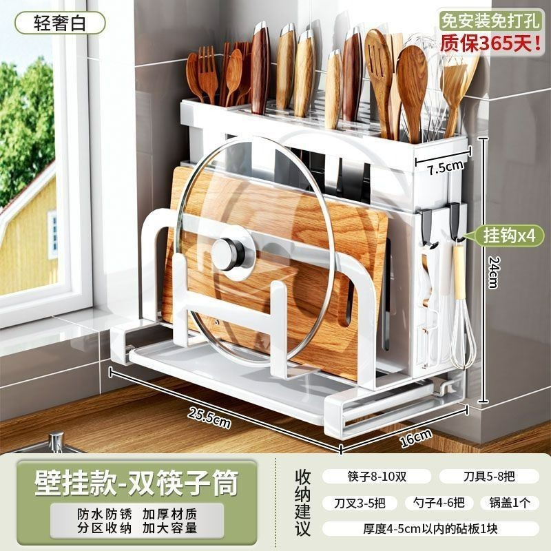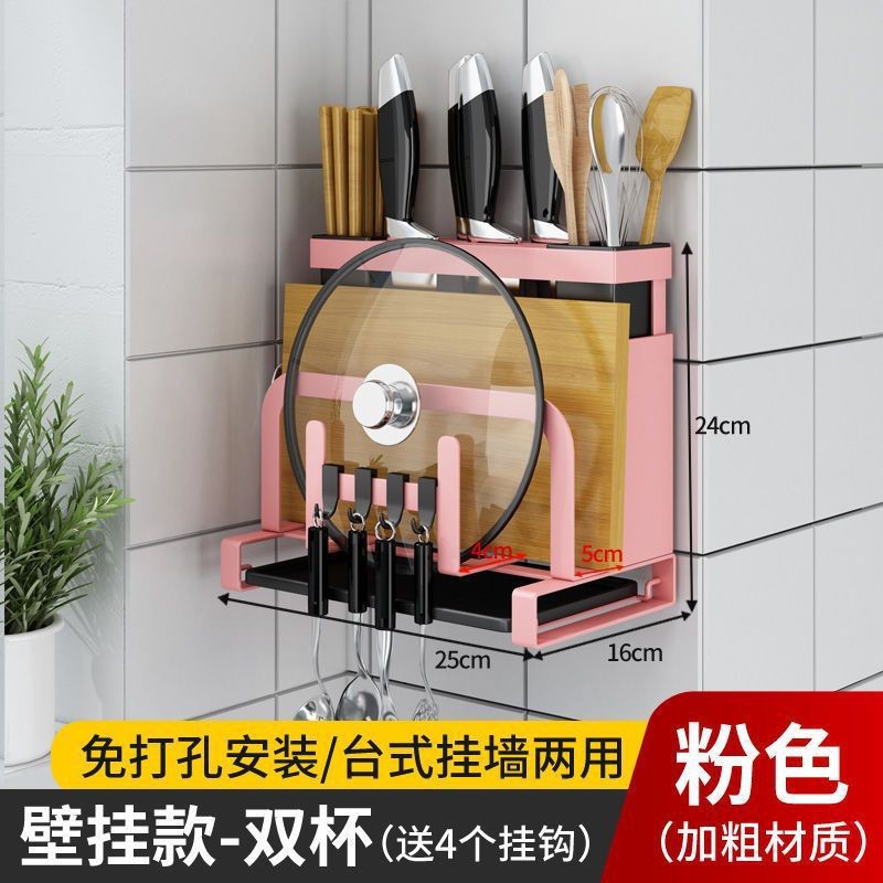 두꺼운 칼 홀더 주방 수납 선반 벽걸이 형 다기능 칼 도마 냄비 뚜껑 젓가락 케이지 수납 올인원 선반