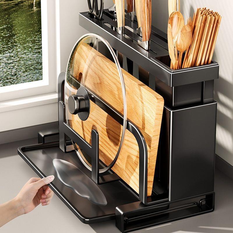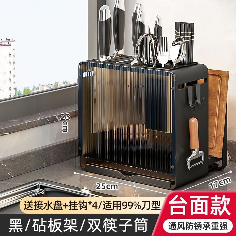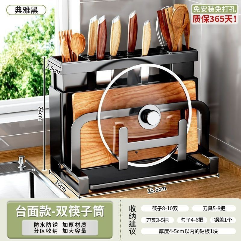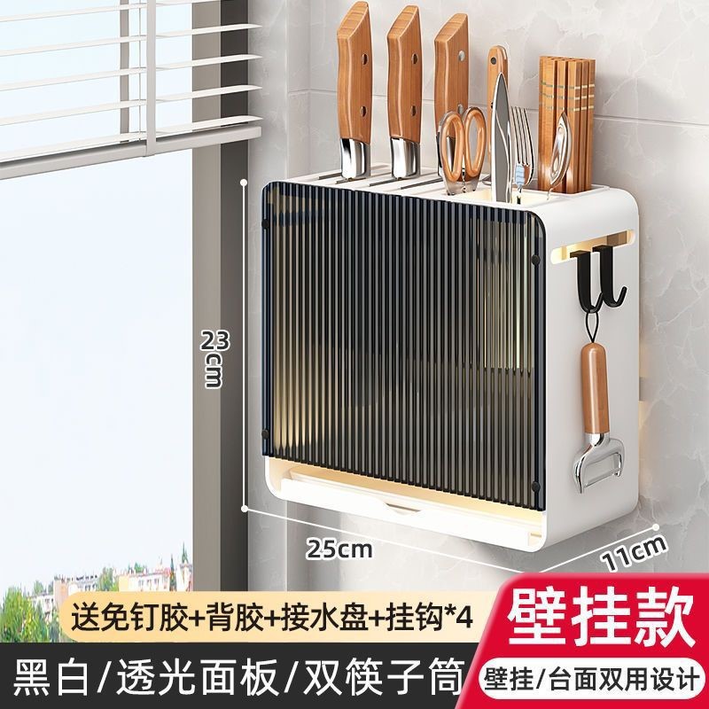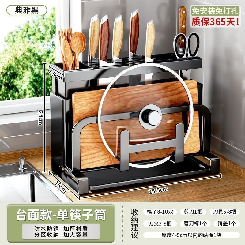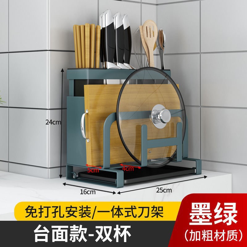 두꺼운 칼 홀더 주방 수납 선반 벽걸이 형 다기능 칼 도마 냄비 뚜껑 젓가락 케이지 수납 올인원 선반