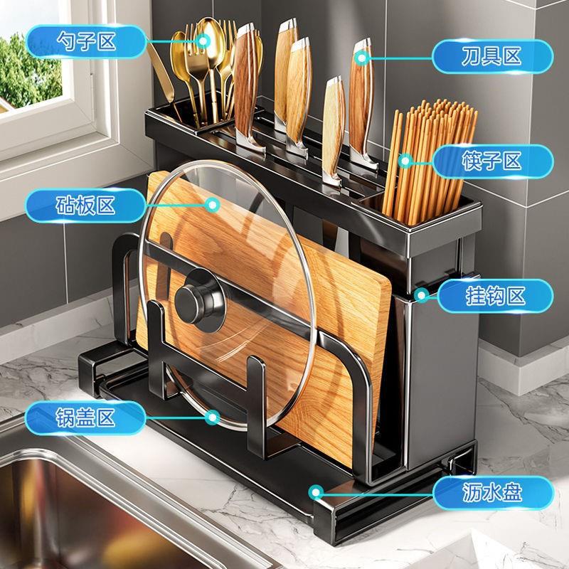 두꺼운 칼 홀더 주방 수납 선반 벽걸이 형 다기능 칼 도마 냄비 뚜껑 젓가락 케이지 수납 올인원 선반스토어 가기