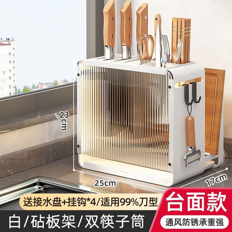 • 흰색 PC 패널 이중 컵 도마 + 칼 홀더 - 데스크탑 ✓ ✓