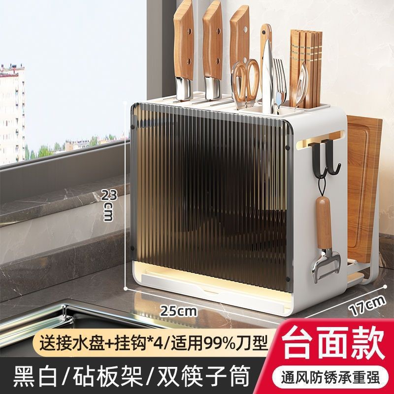 • 흑백 PC 패널 더블 컵 도마 + 칼 홀더 - 데스크탑 ✓ ✓
