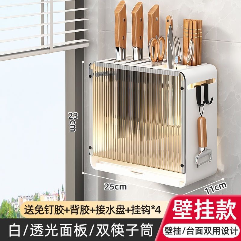 • 흰색 PC 패널 이중 컵 도마 + 칼 홀더 - 벽걸이 ✓ ✓