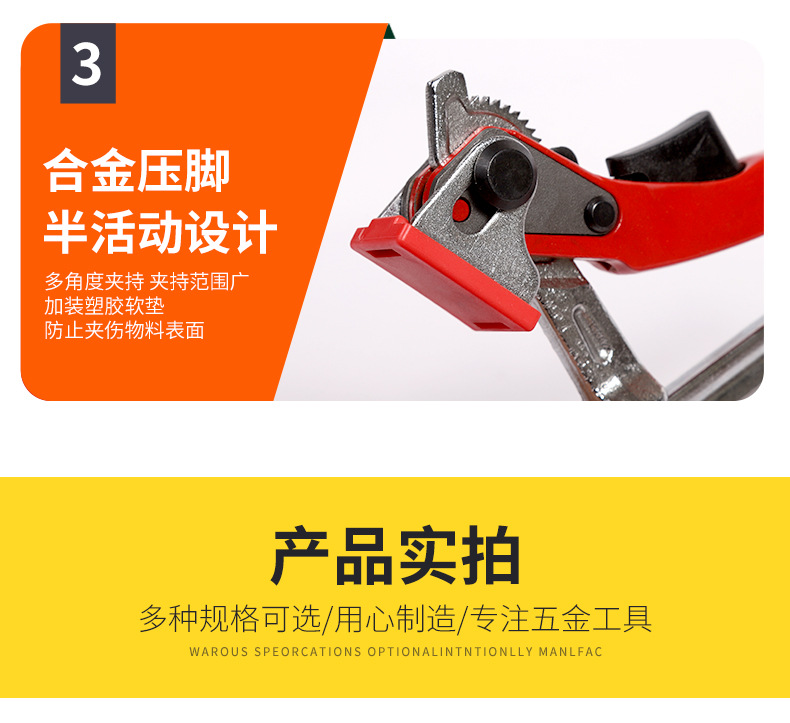 산업용 단조 삽입형 데스크탑 F 클립 목공 데스크탑 새로운 수동 압력 플레이트 클립 고속 공구 클립 벤치 클램프