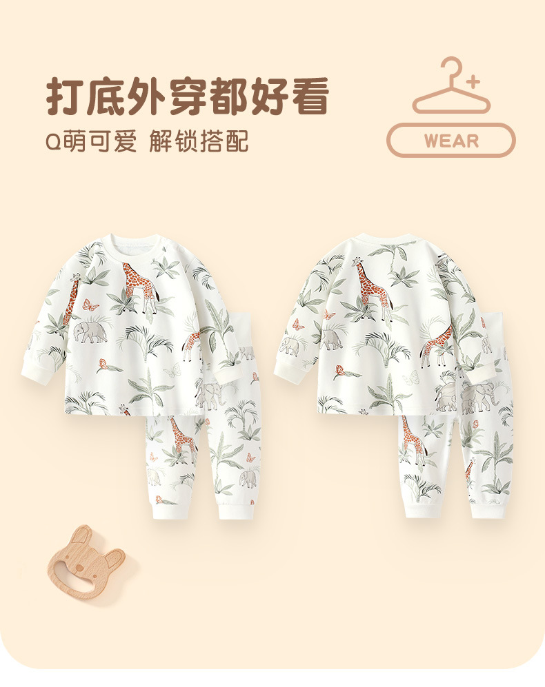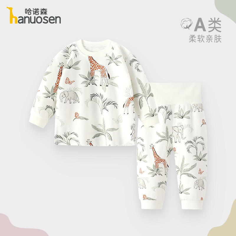 아기 가을 옷과 긴 바지 아기 부드러운 벨벳 면화 소년과 소녀 잠옷 2025 가을 높은 허리 배꼽 보호 어린이 따뜻한 속옷스토어 가기