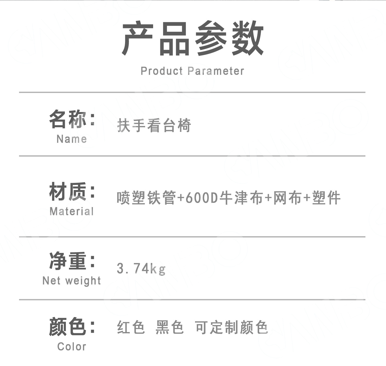 产品材质 :1.铁管;2.面料:600D PVC牛津布;3.加厚海绵垫