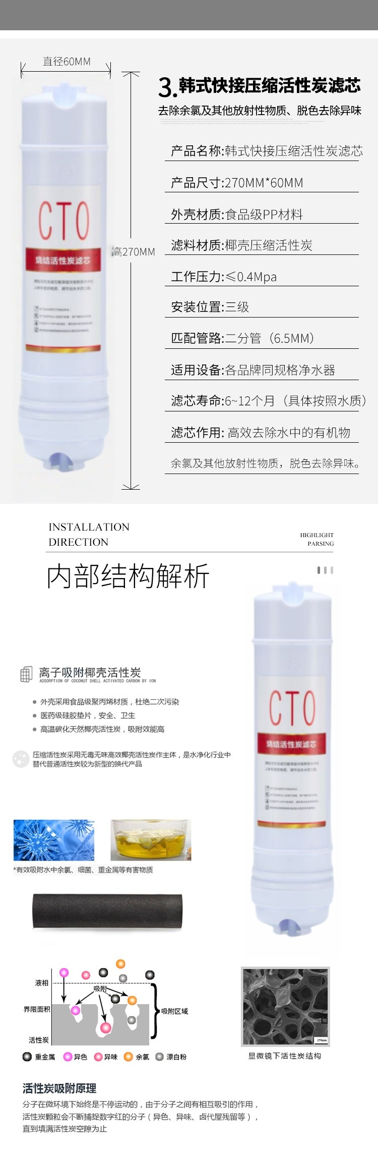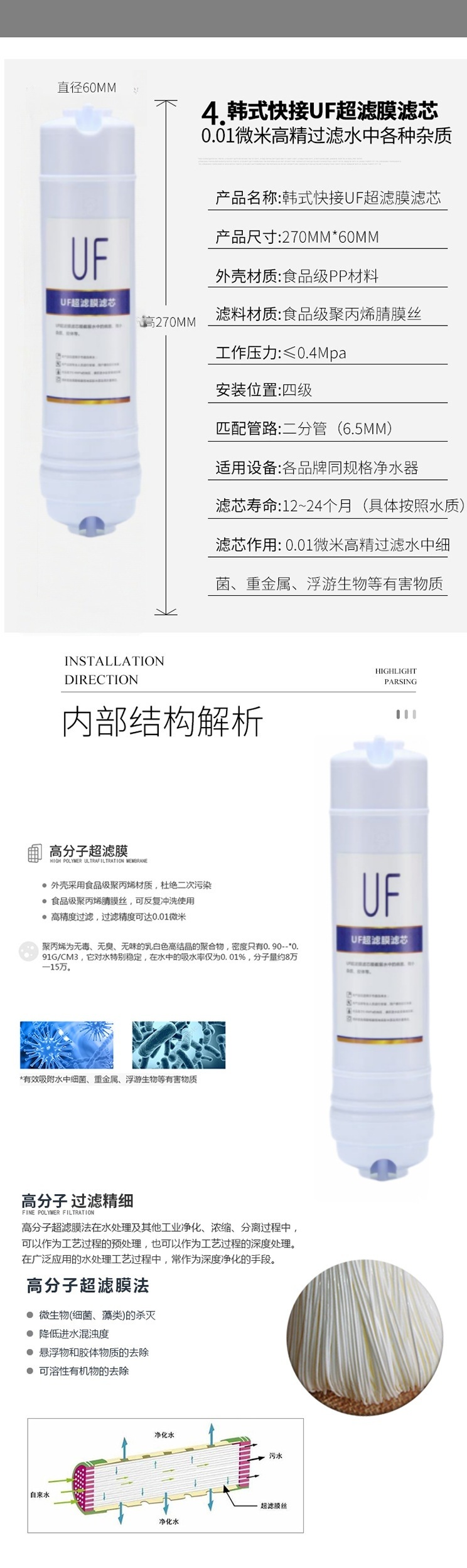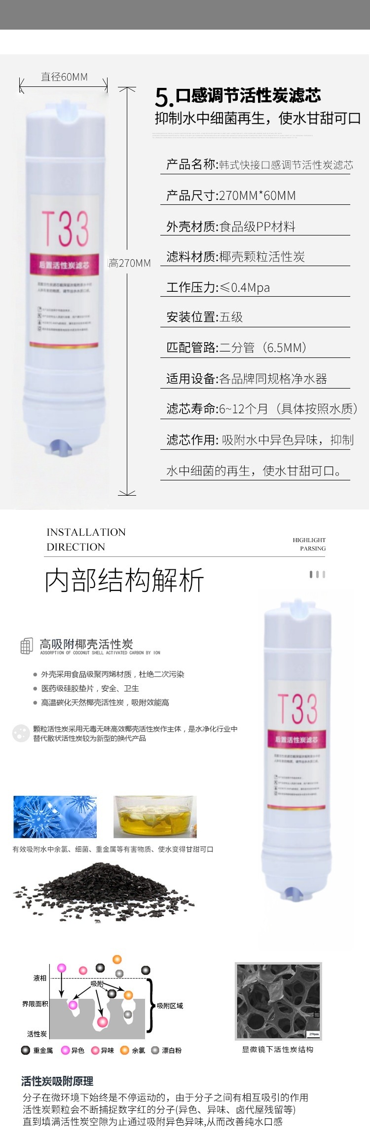 PP 면 활성탄 한외여과 필터 요소 정수기 5단계 풀 세트 빠른 연결 범용 소형 T33 후면 활성탄스토어 가기