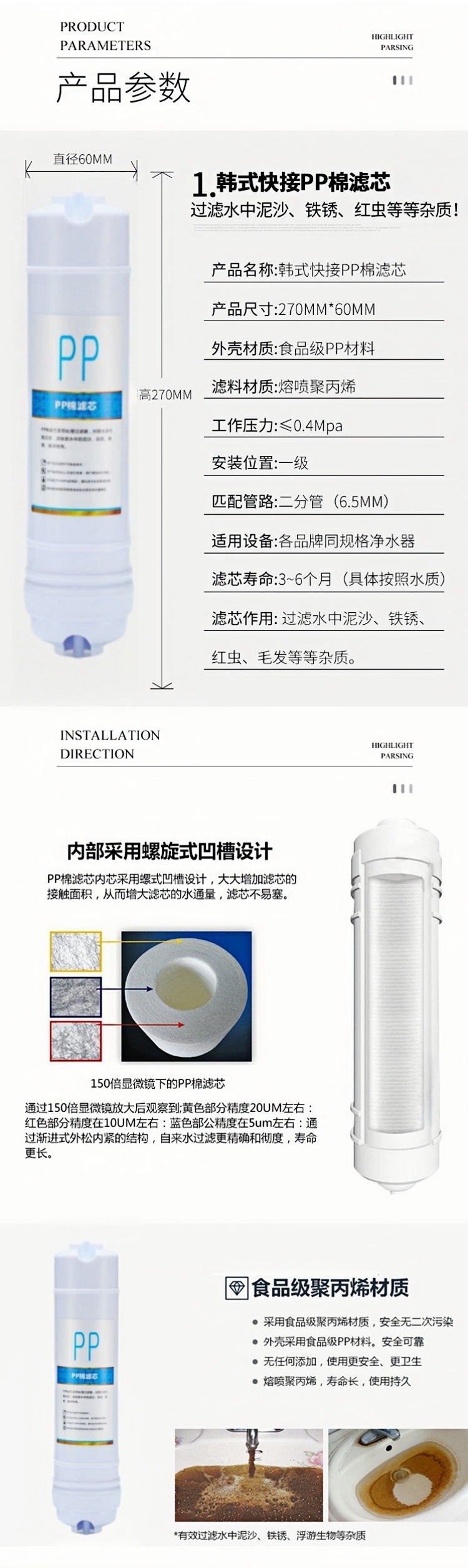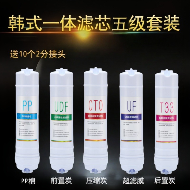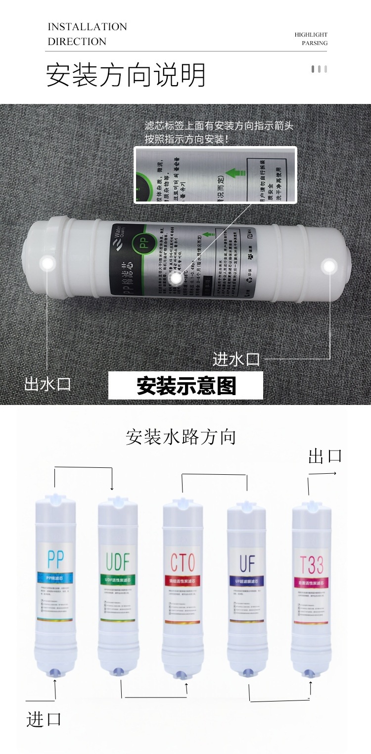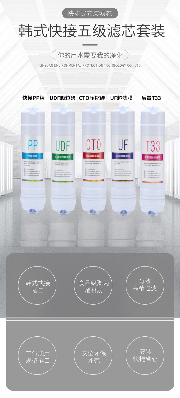PP 면 활성탄 한외여과 필터 요소 정수기 5단계 풀 세트 빠른 연결 범용 소형 T33 후면 활성탄