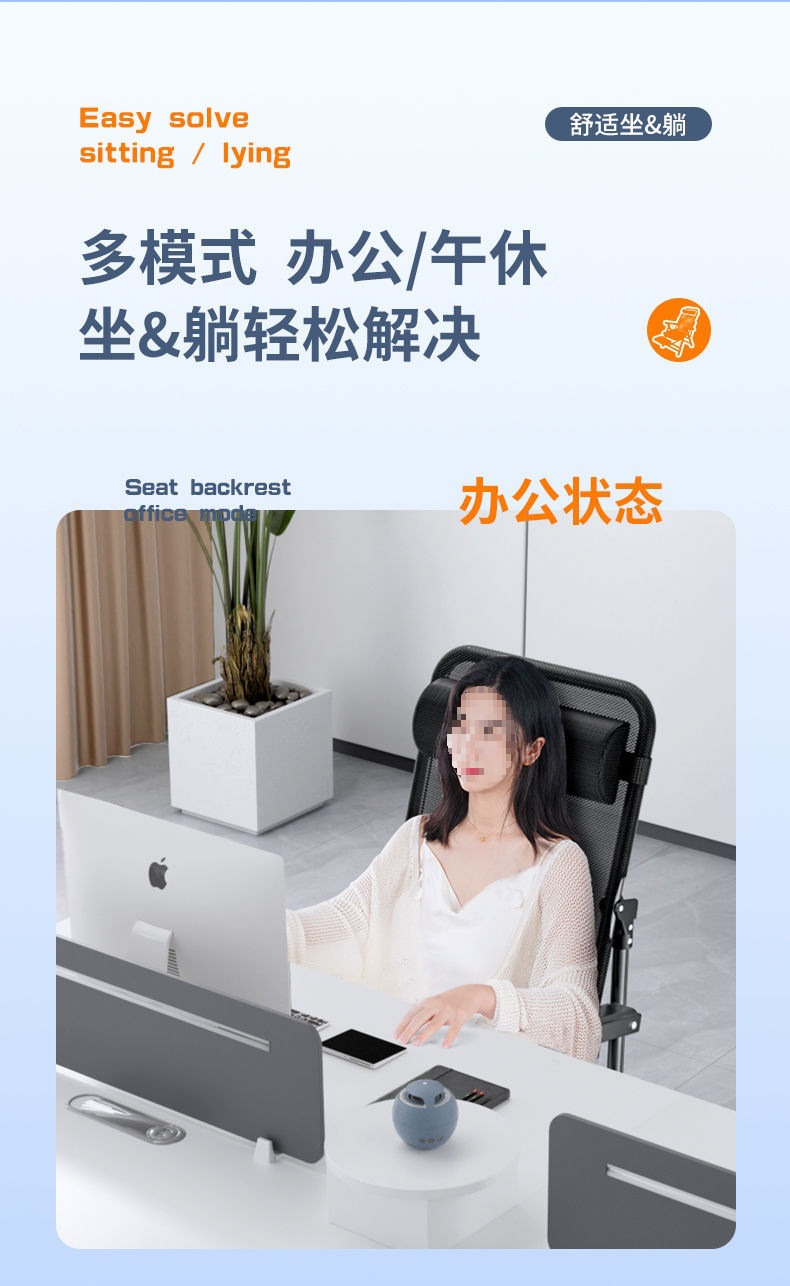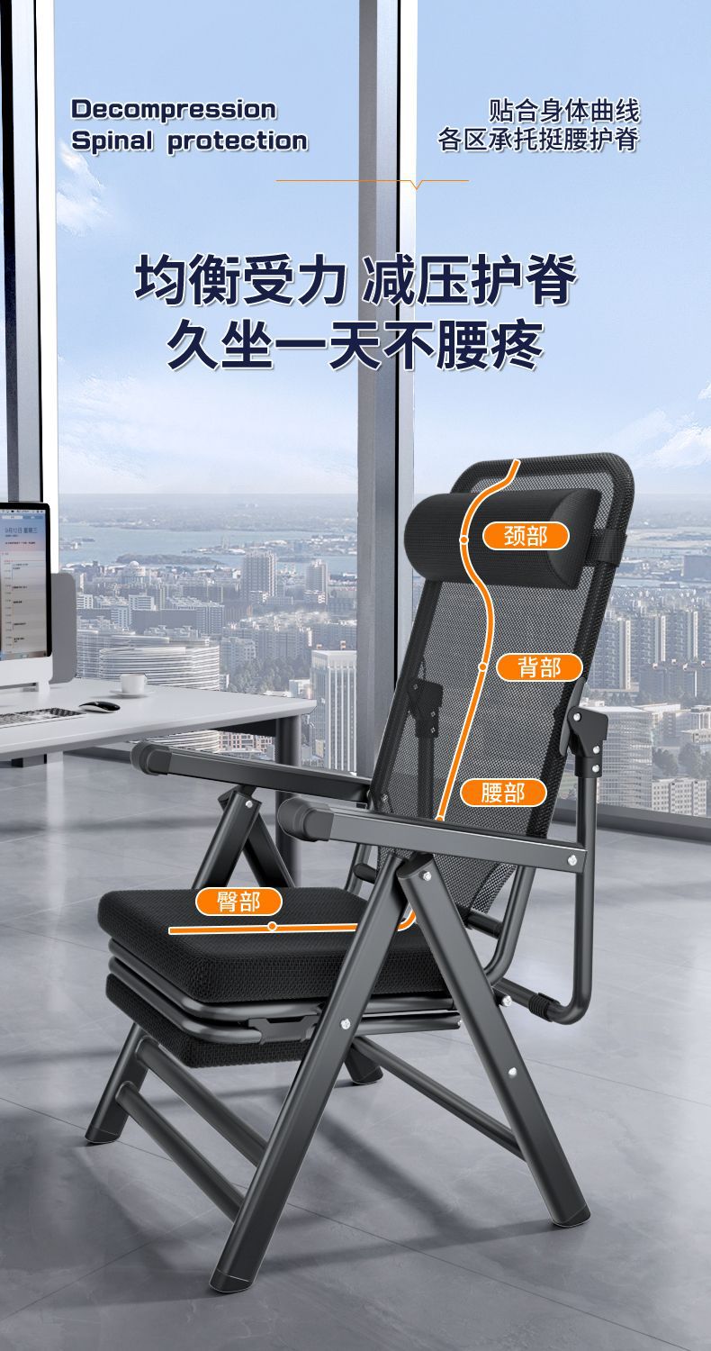 Mlo 게으른 등받이 의자 접이식 사무실 좌석 안락 의자 사무실 의자 편안한 좌식 컴퓨터 의자 점심 시간 안락 의자스토어 가기