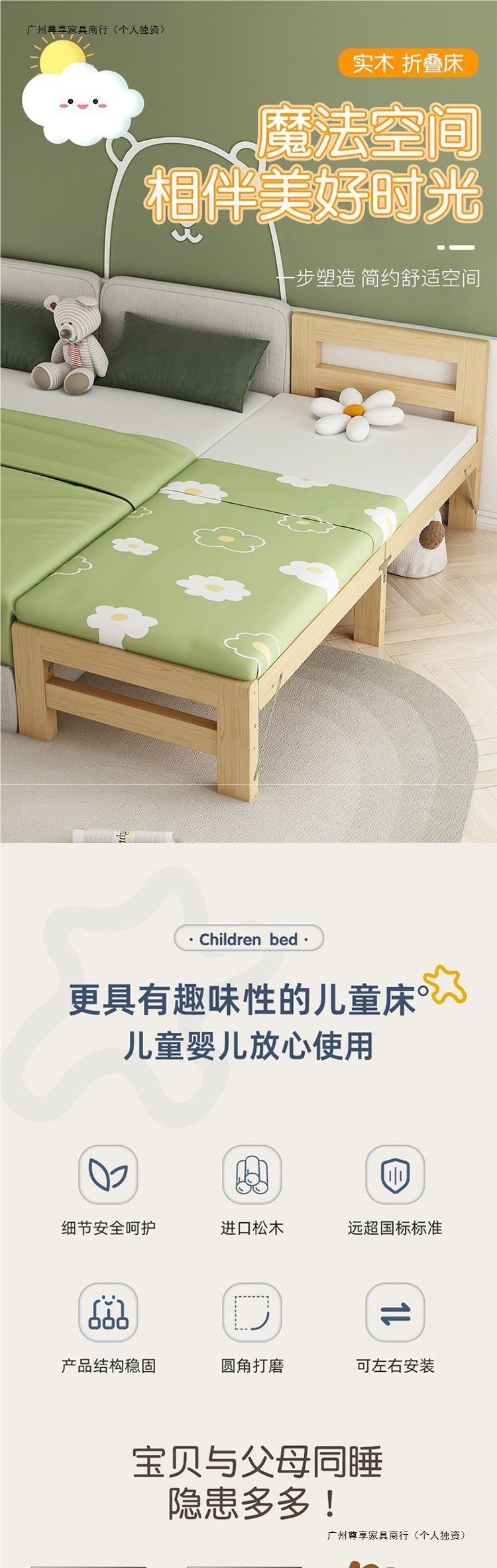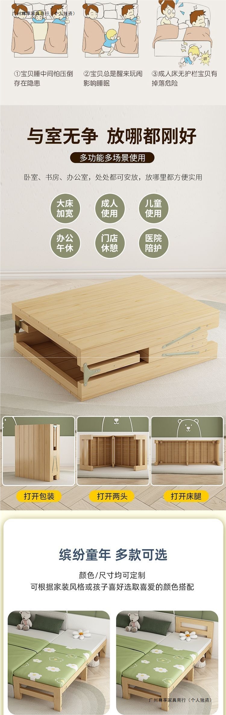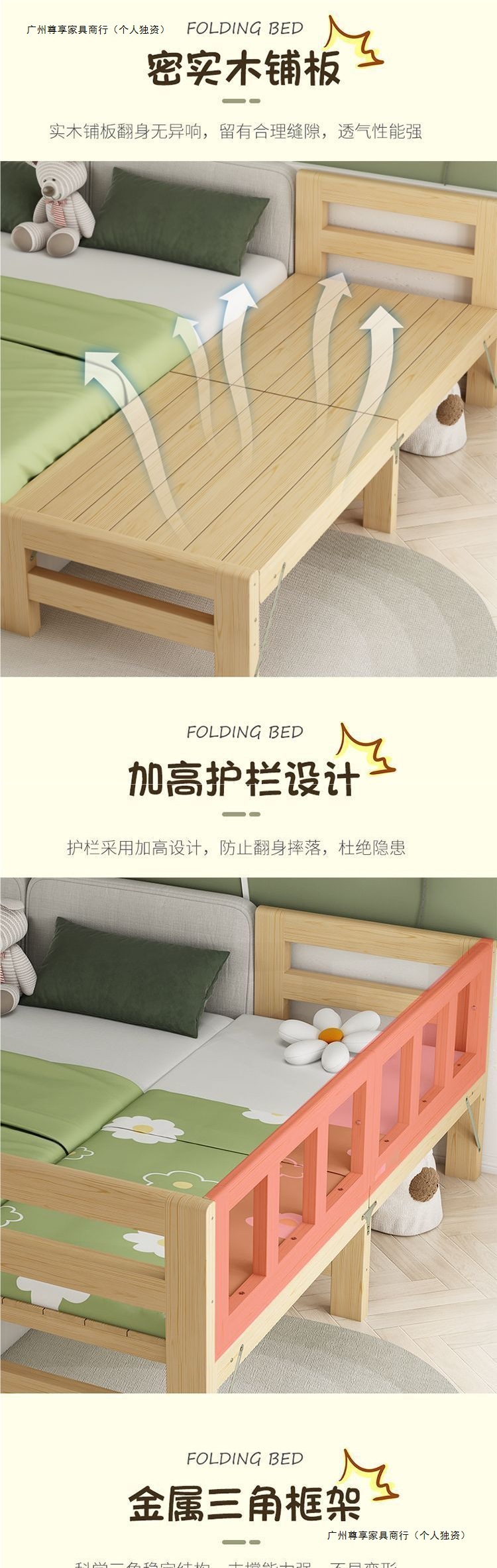z% 단단한 나무 아기 접합 침대 접이식 침대 설치가 필요 없으며 가드 레일이있는 어린이 침대 소년 소녀 접합 대형 침대 아기스토어 가기