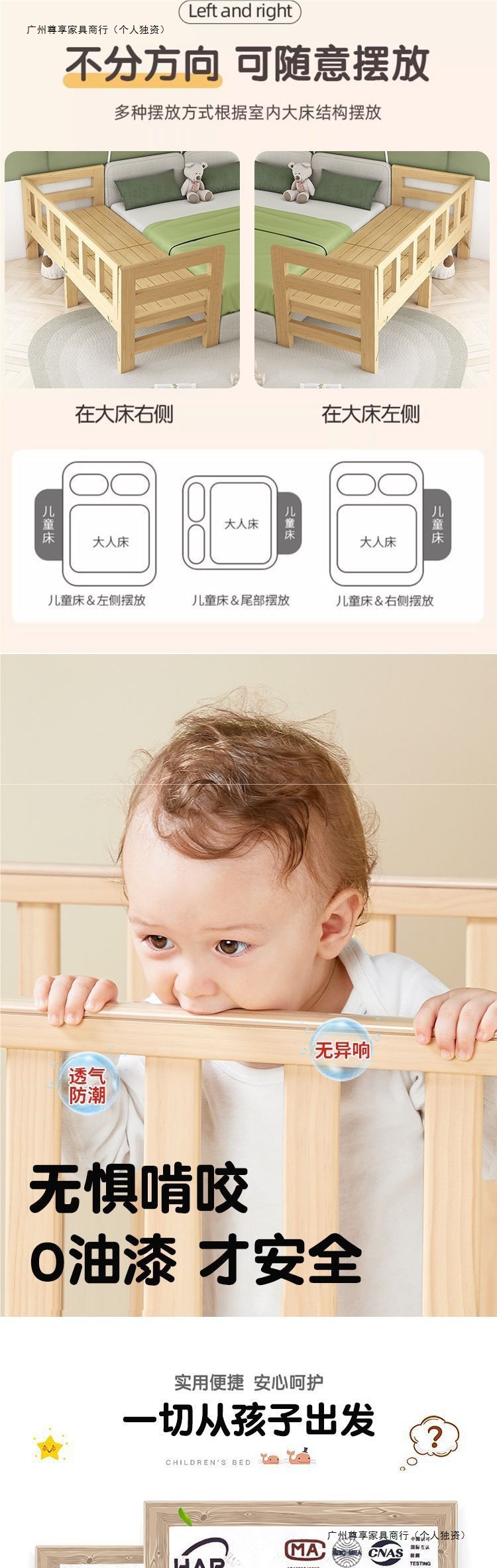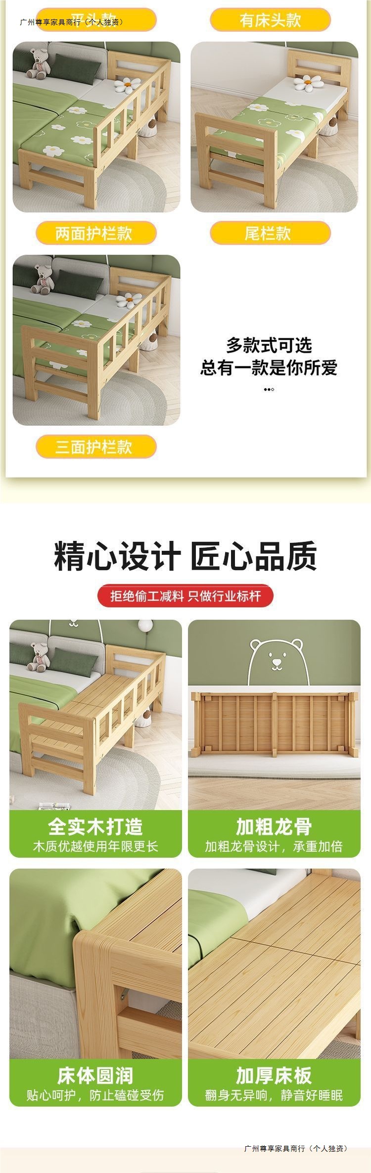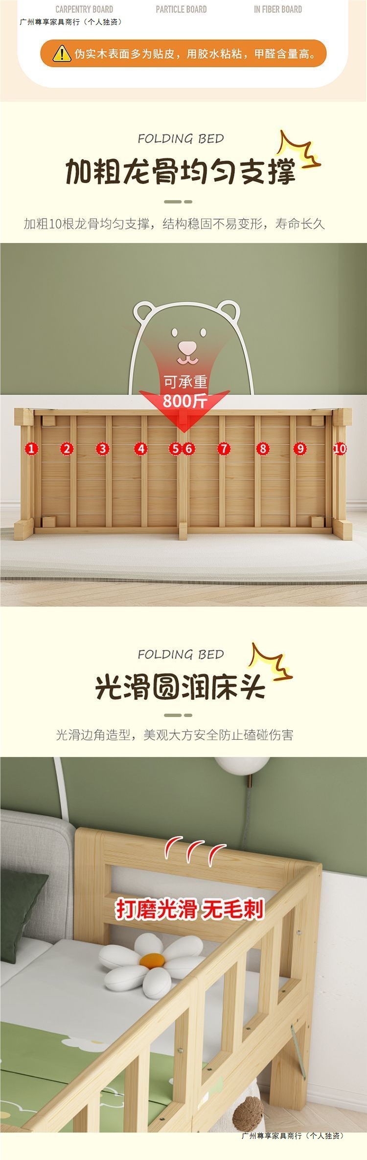 z% 단단한 나무 아기 접합 침대 접이식 침대 설치가 필요 없으며 가드 레일이있는 어린이 침대 소년 소녀 접합 대형 침대 아기스토어 가기