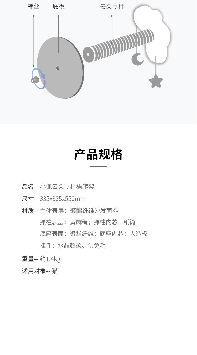 Xiaopei Yunduo 고양이 클라이밍 프레임, 고양이 둥지, 고양이 트리, 일체형 고양이 프레임, 고양이 스크래치 포스트, 소형 스카이 컬럼, 고양이 클라이밍 프레임, 클라이밍 컬럼 및 점프 플랫폼