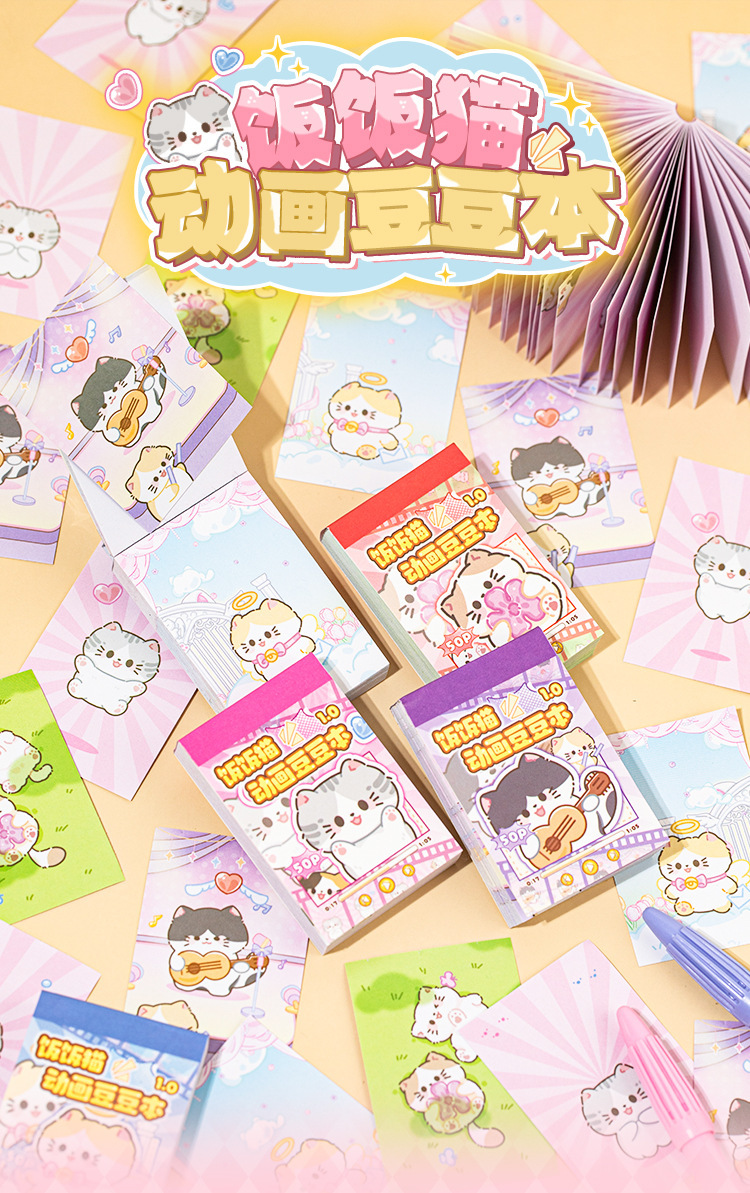 Yuxian Doudou 스티커 책, 고양이 애니메이션, 귀여운 스타일, 창의적이고 흥미로운 애니메이션 자료, 어린이 핸드북 콜라주스토어 가기