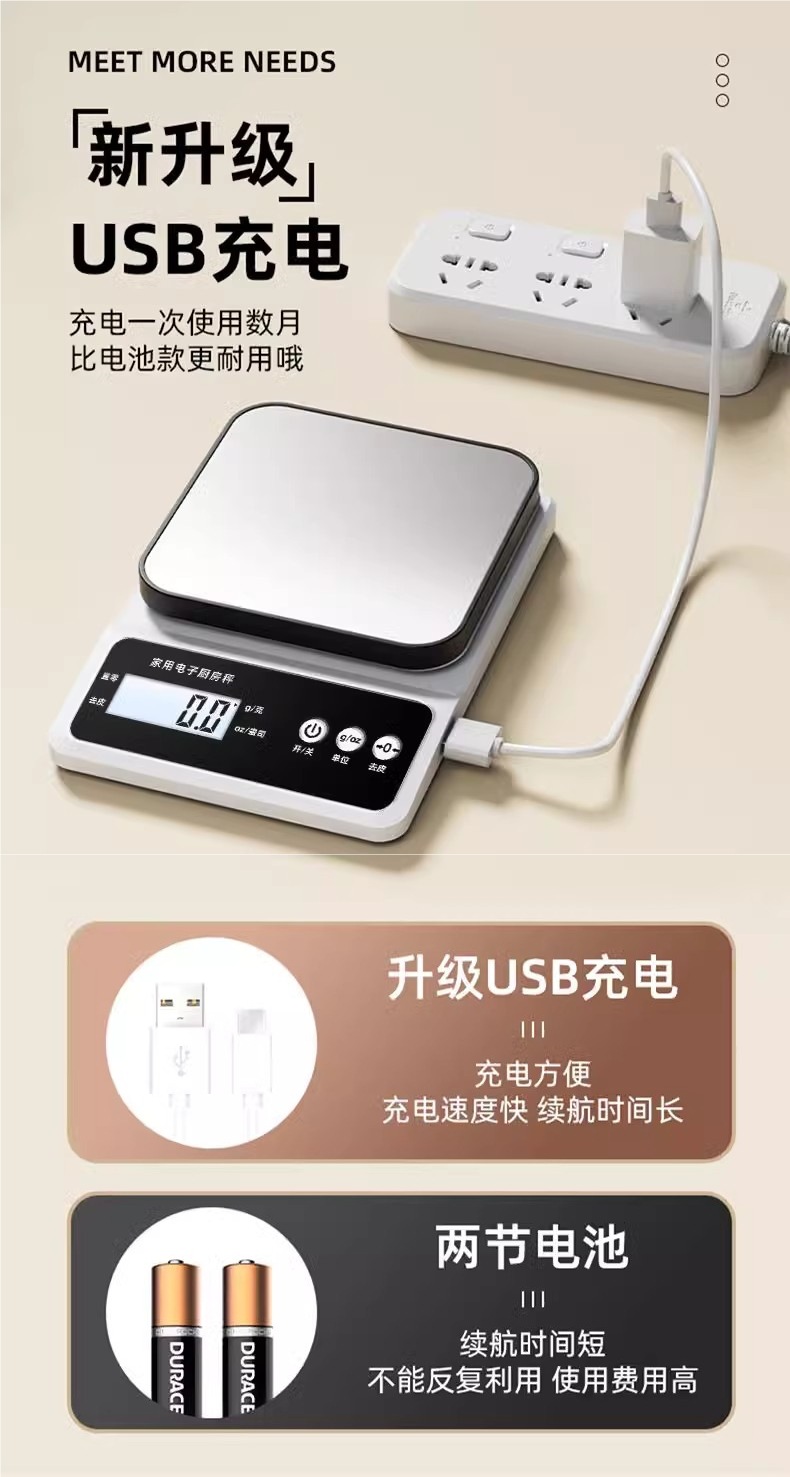 • 충전식 모델 [3kg/0.1g 정확도] 14CM 스테인레스 스틸 계량 팬