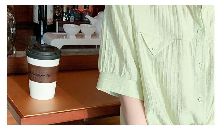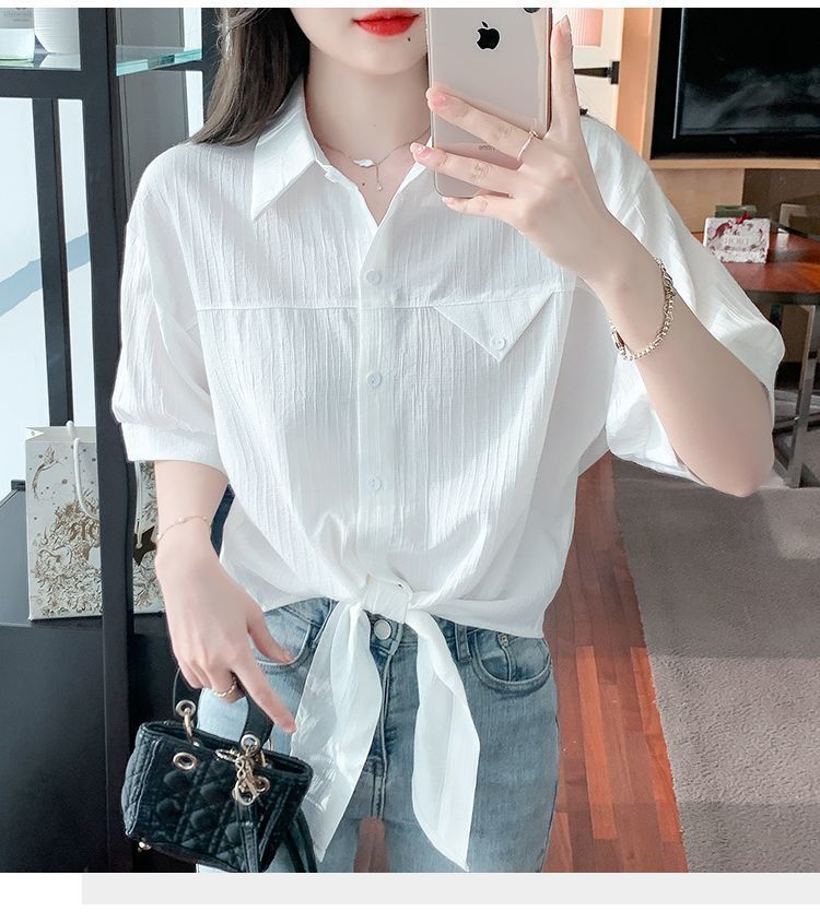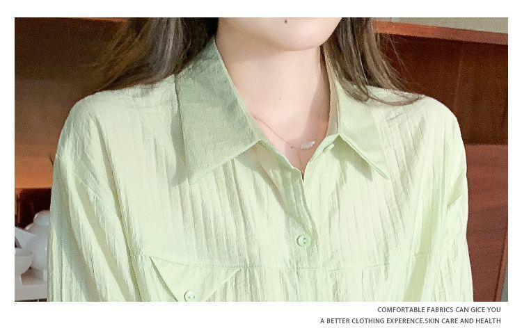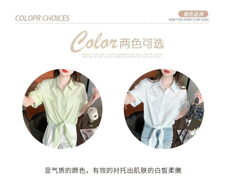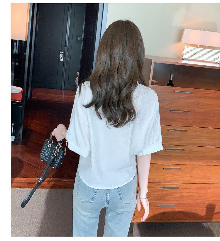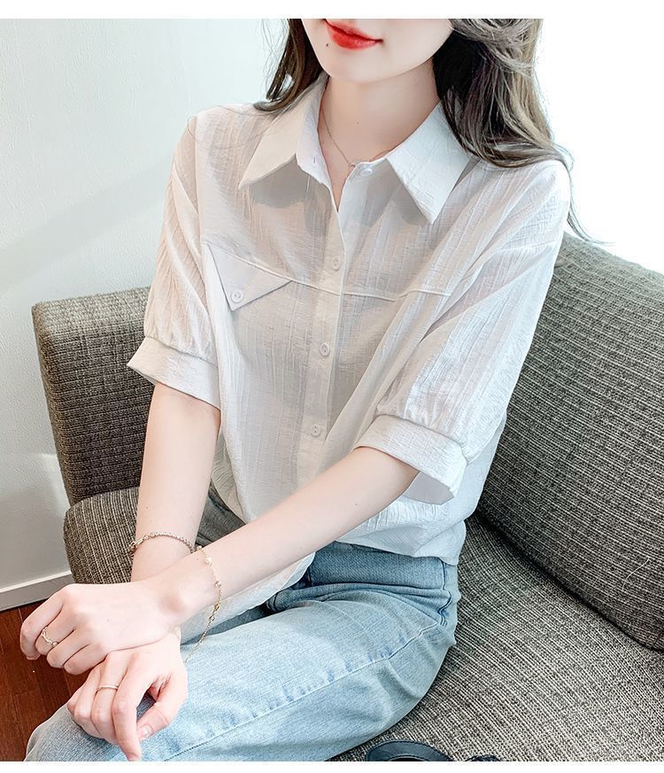 여성용 쉬폰 셔츠 2025 신작 여름 루즈하고 다재다능한 고급 카디건 솔리드 컬러 폴로 칼라 셔츠 반팔 탑스토어 가기