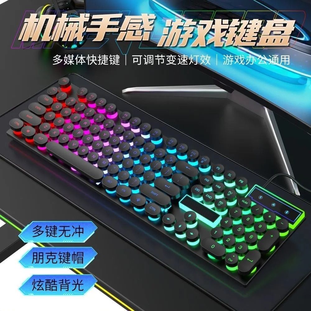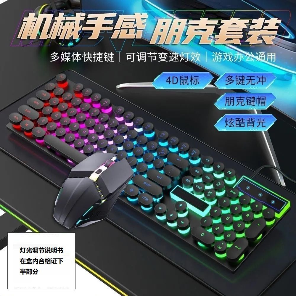 E-스포츠 펑크 키보드 발광 게임 세트 유선 마우스 및 키보드 느낌 마우스 휴대 전화 태블릿 범용 오피스 게임스토어 가기