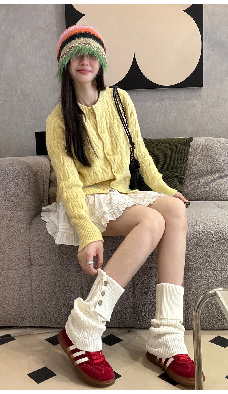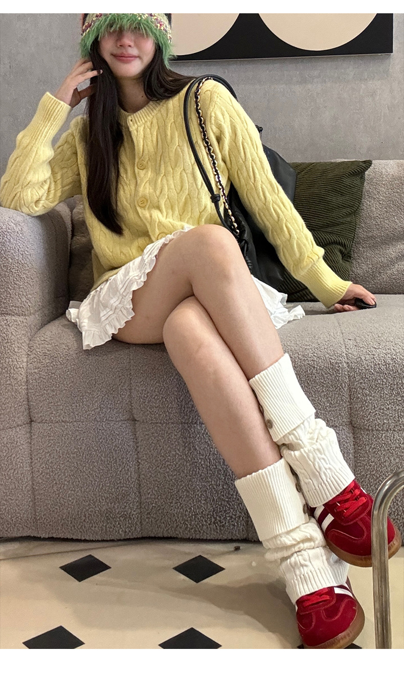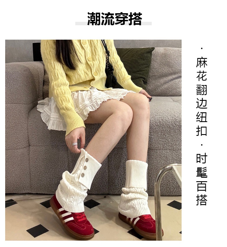 레트로 트위스트 패턴 커프 양말, 영국 대학 스타일 통기성 쉐이핑 레그 워머, 하위 문화 버튼 장식 양말