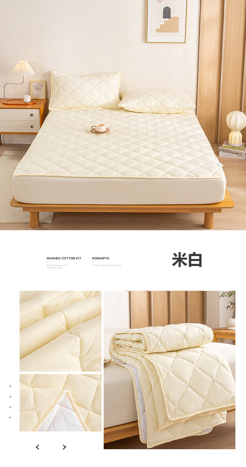 사계절 사용 가능한 워시드 코튼 기모 누빔 매트리스 시트, 얇은 학생 기숙사 싱글 침대, 클래스 A 패드스토어 가기