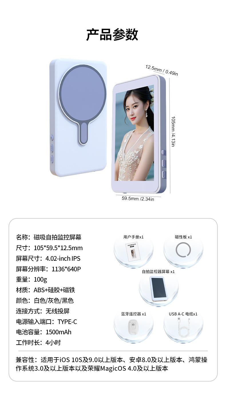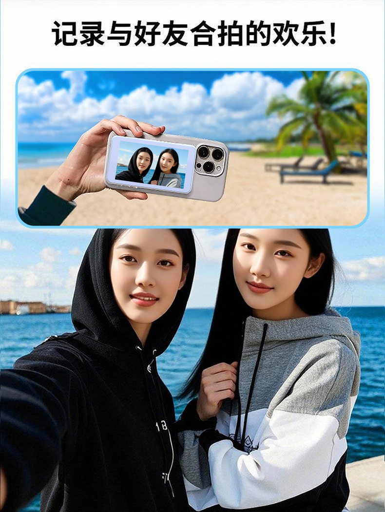 해외 무역용 고화질 휴대폰 동시화면 장치, 후면 자석 셀카 스크린, 인터넷 유명인 전용 스틱 어댑터, 세로 촬영