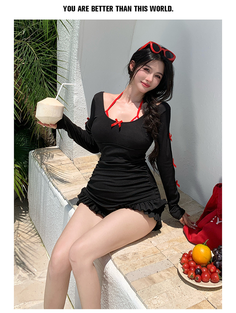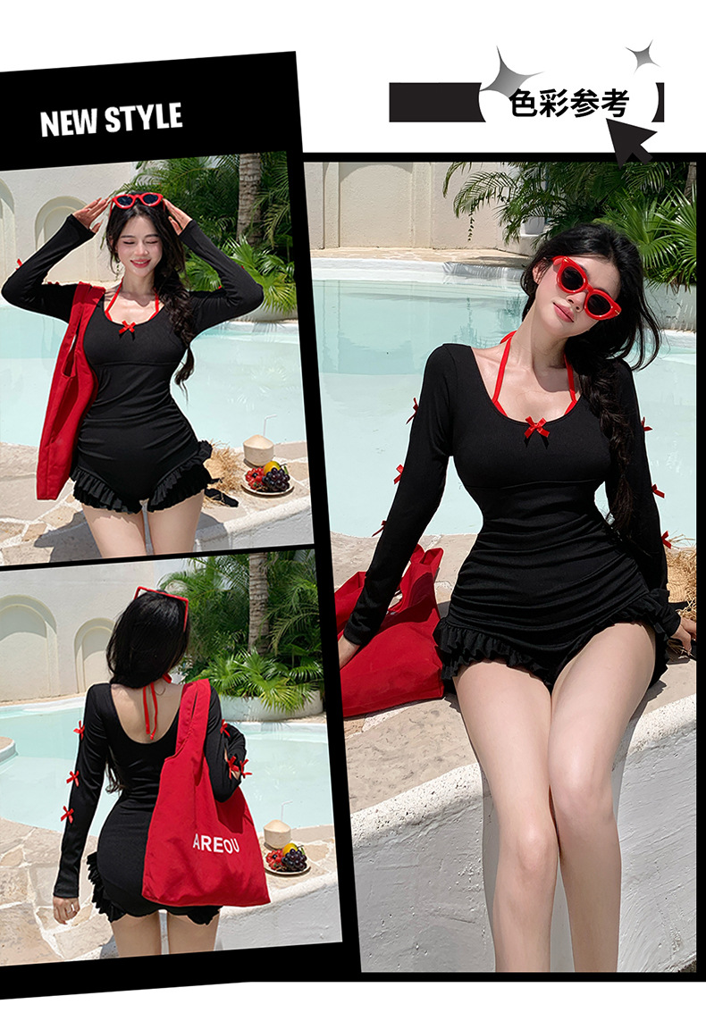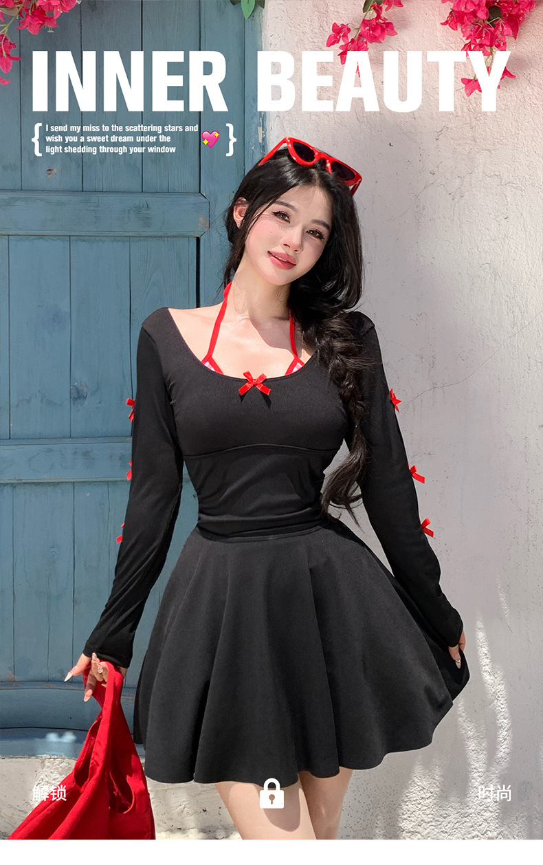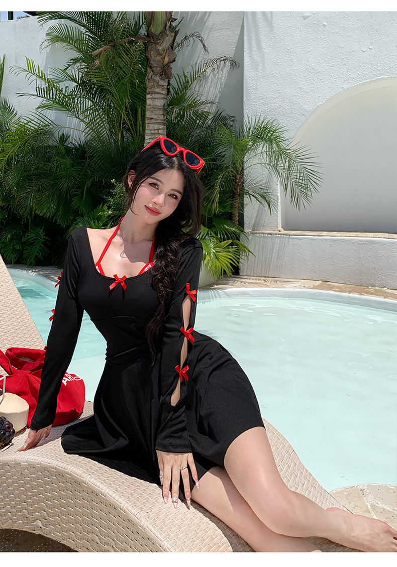 2025 새로운 대형 수영복 여성 원피스 삼각 스커트 투피스 백리스 슬리밍 하이 엔드 온천 수영복스토어 가기