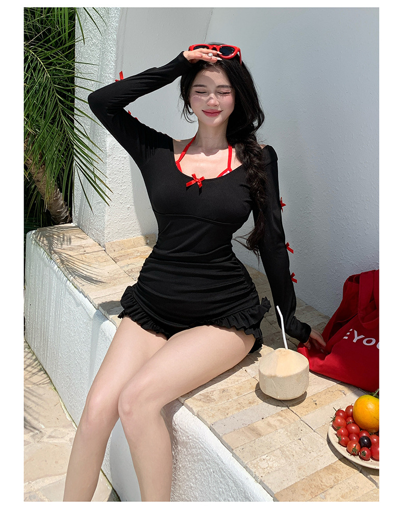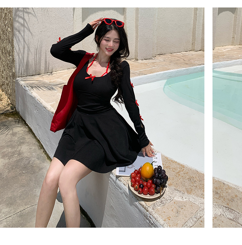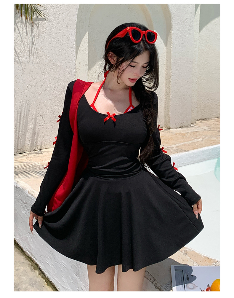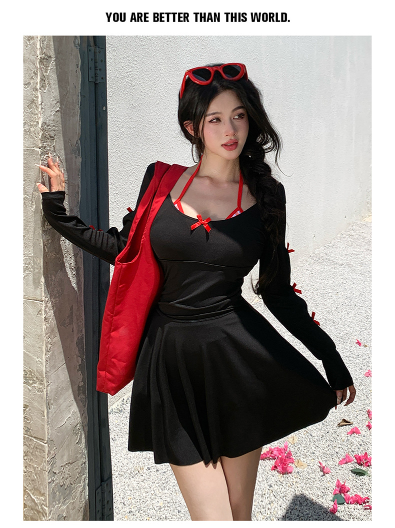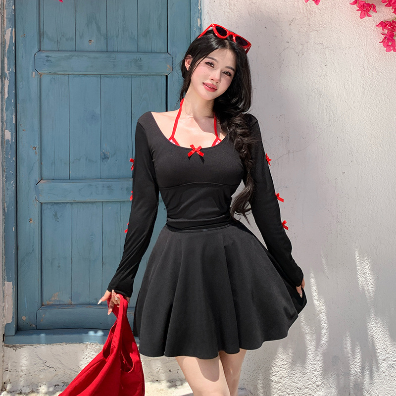 2025 새로운 대형 수영복 여성 원피스 삼각 스커트 투피스 백리스 슬리밍 하이 엔드 온천 수영복스토어 가기