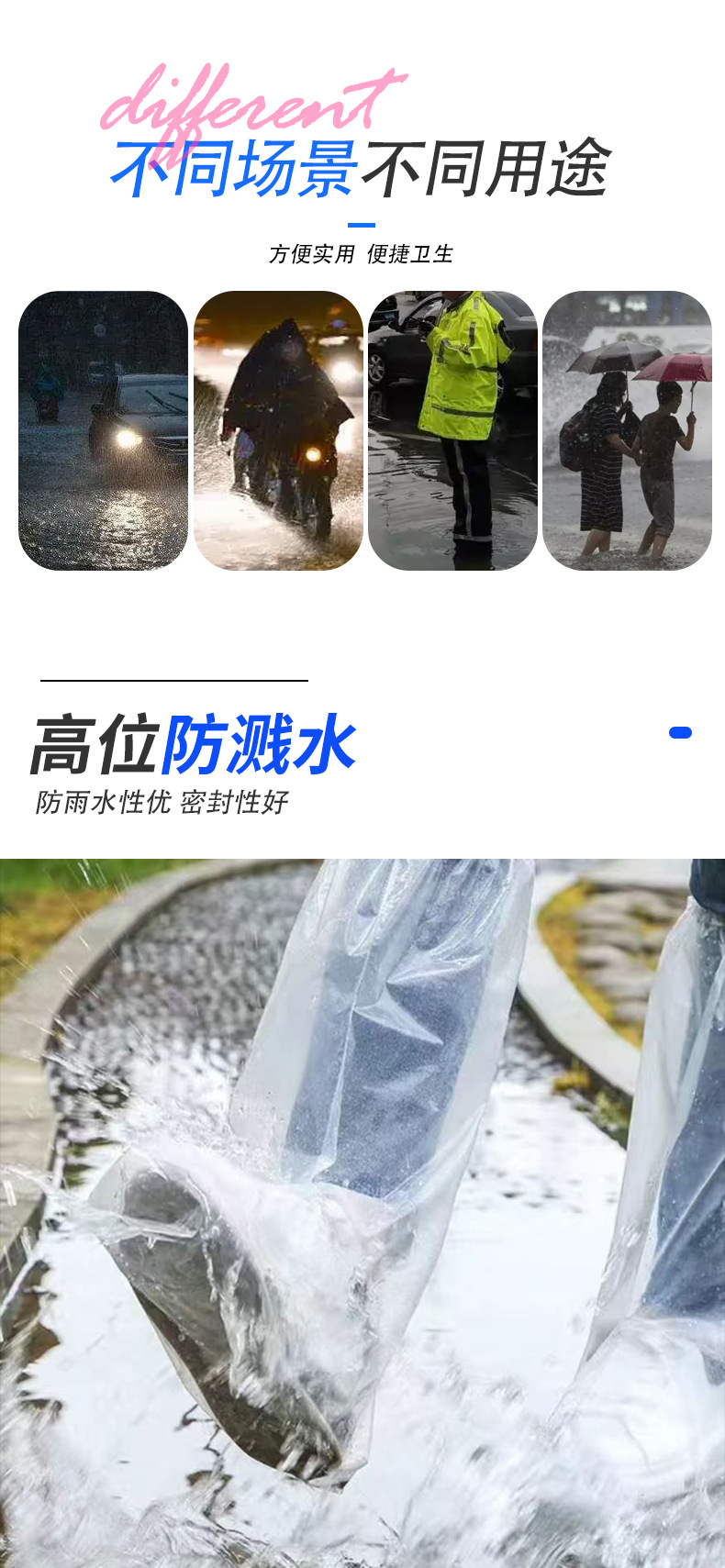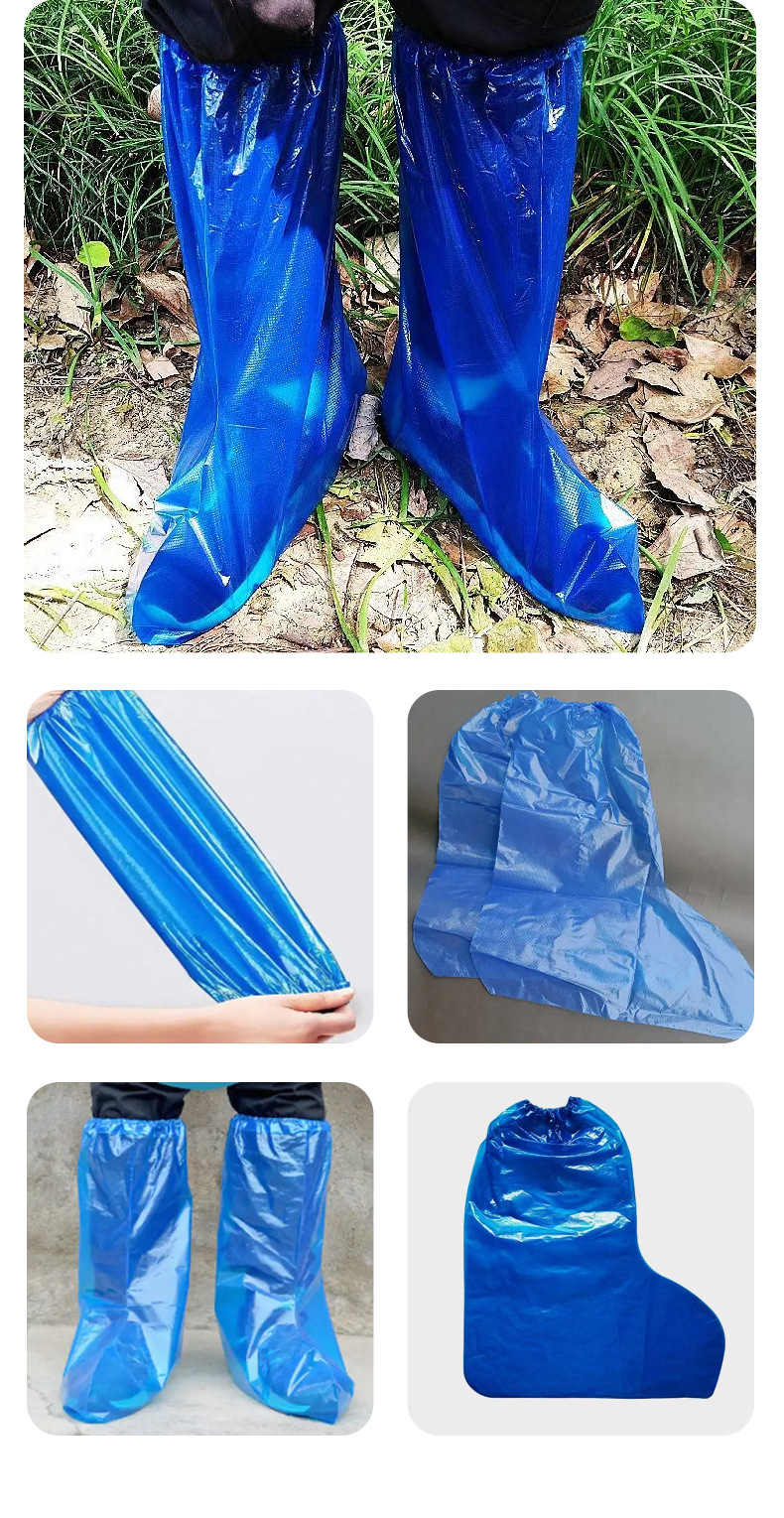 일회용 긴 두꺼운 플라스틱 부츠 커버 야외 비오는 날 방수 미끄럼 방지 신발 커버 농장 플라스틱 부츠 커버 도매