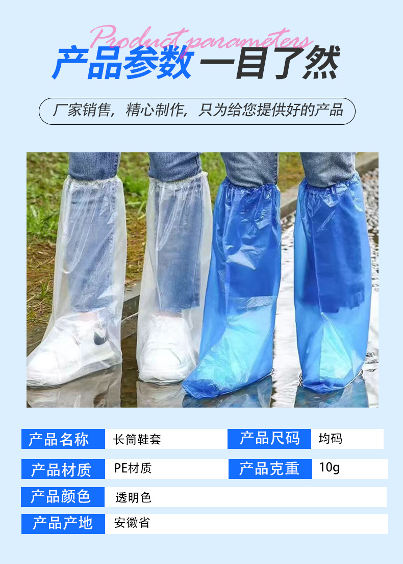 일회용 긴 두꺼운 플라스틱 부츠 커버 야외 비오는 날 방수 미끄럼 방지 신발 커버 농장 플라스틱 부츠 커버 도매스토어 가기