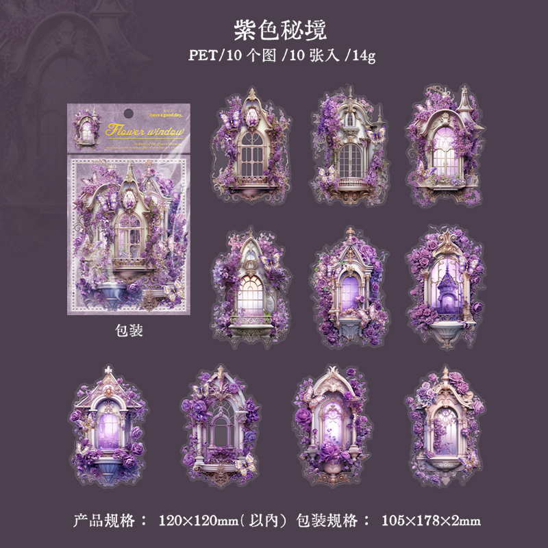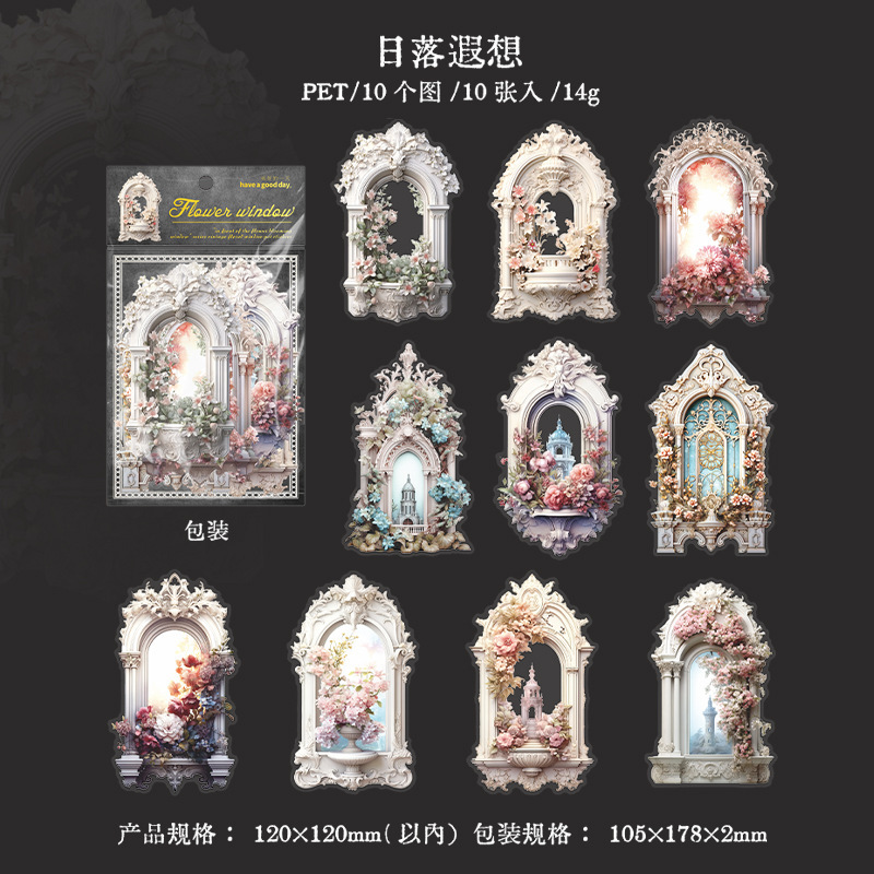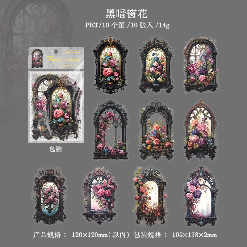 꽃이 피어있는 창문 시리즈 아름다운 하루 PET 스티커 복고풍 꽃창 핸드북 소재 6종스토어 가기