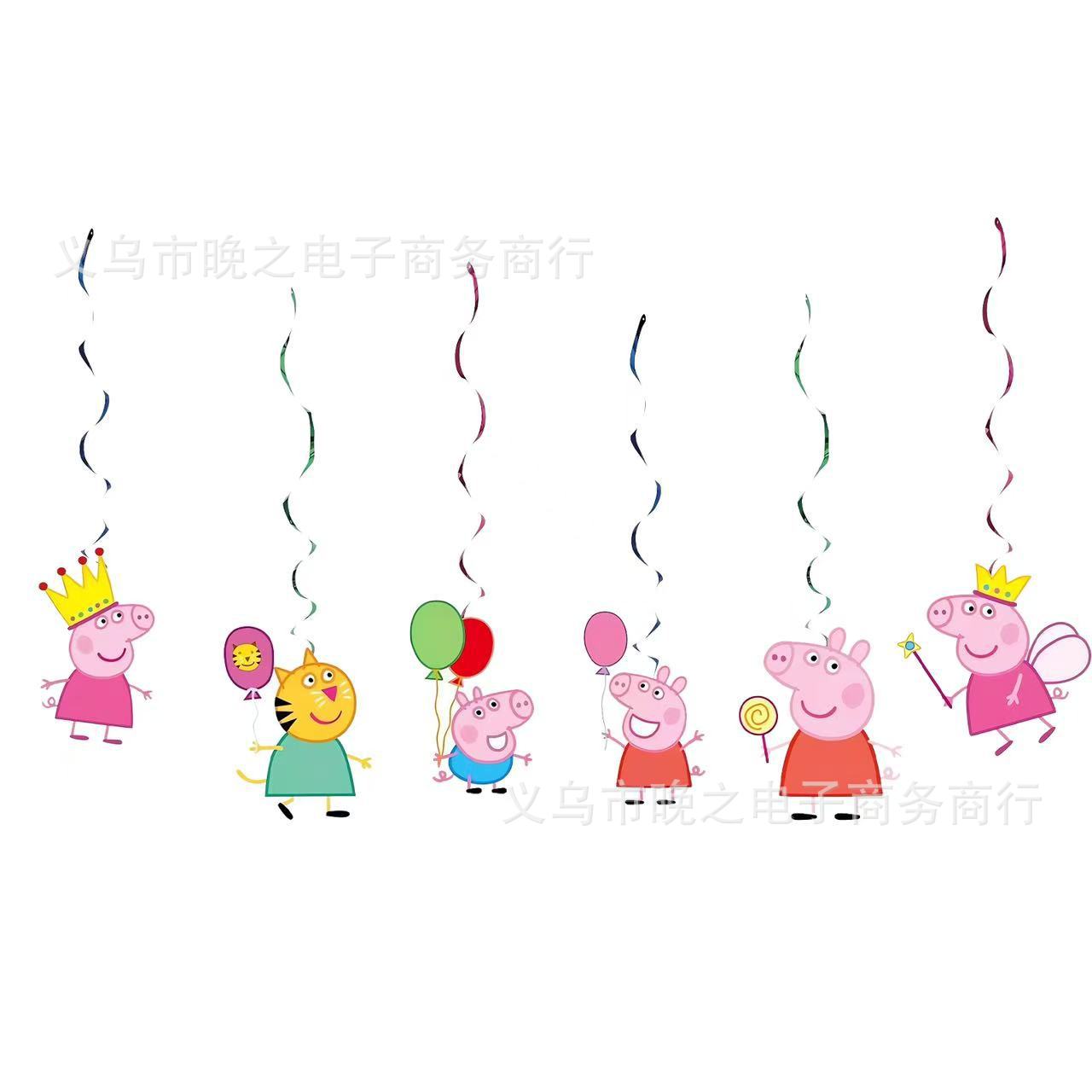 Peppa Pig 테마 어린이 생일 파티 장식 용품 플래그 스파이크 나선형 행잉 카드 라텍스 풍선 세트