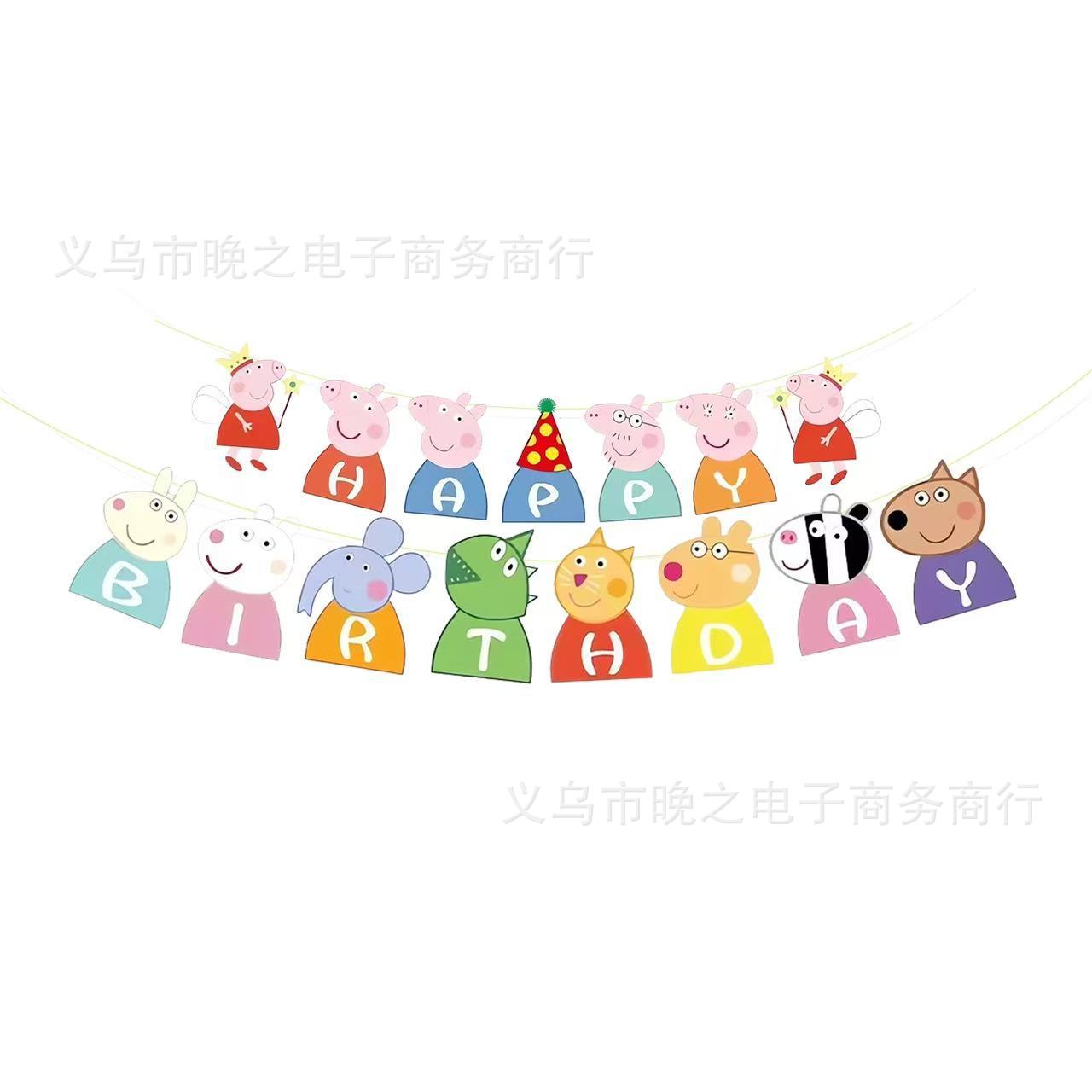 Peppa Pig 테마 어린이 생일 파티 장식 용품 플래그 스파이크 나선형 행잉 카드 라텍스 풍선 세트스토어 가기