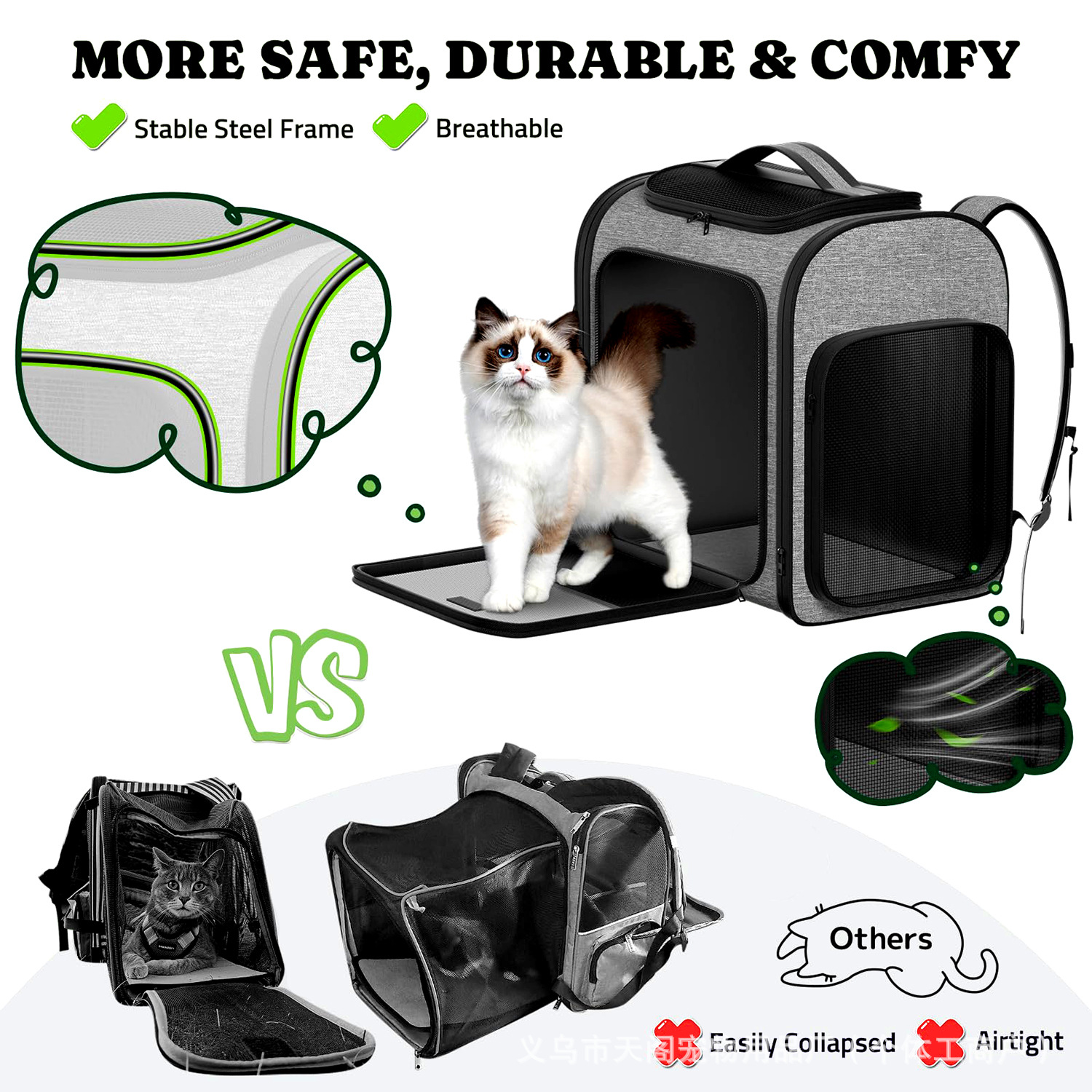 고양이 배낭, 개 애완 동물 외출 휴대용 배낭, 통기성 대용량 접이식 안티 스트레스 고양이 애완 동물 가방스토어 가기