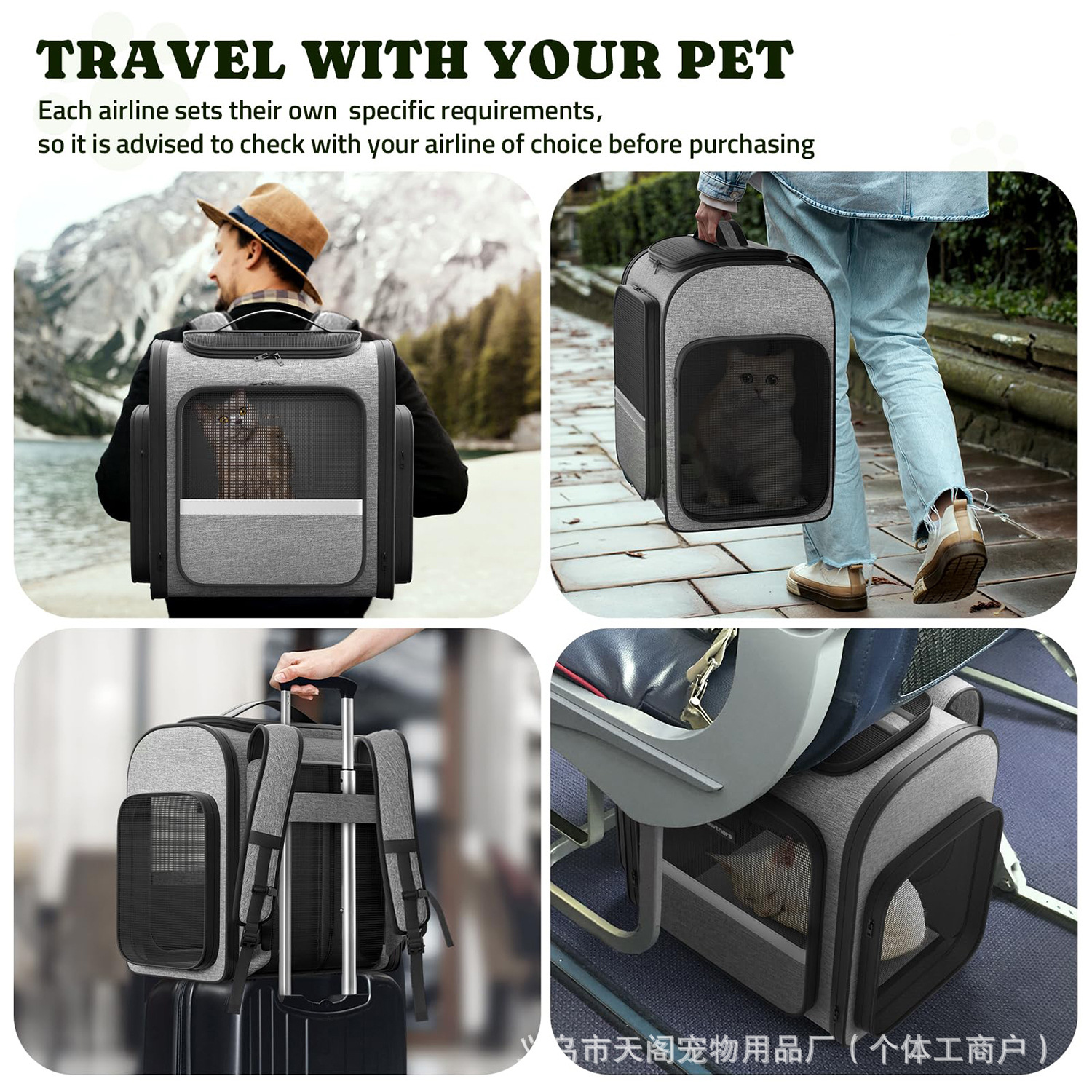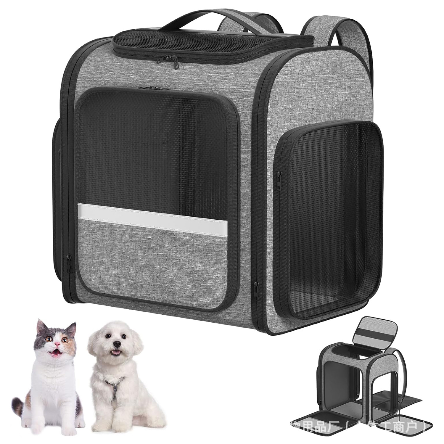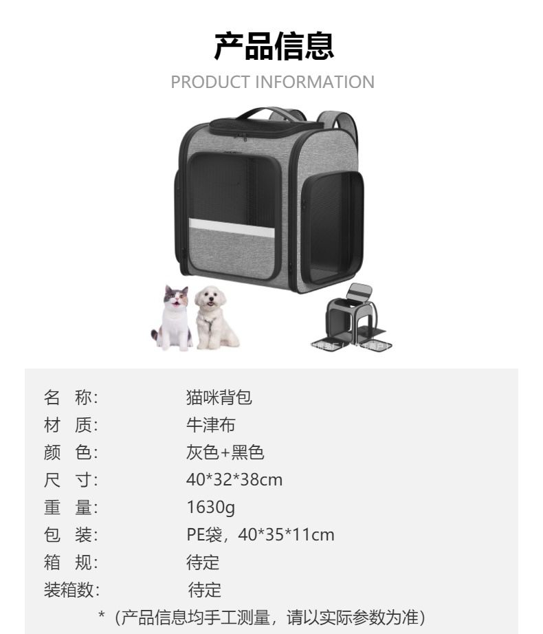고양이 배낭, 개 애완 동물 외출 휴대용 배낭, 통기성 대용량 접이식 안티 스트레스 고양이 애완 동물 가방