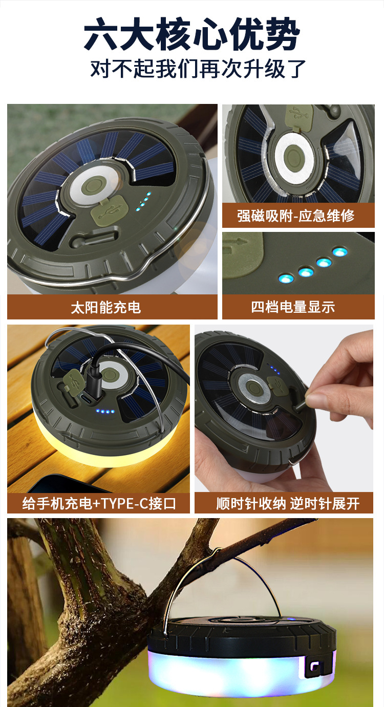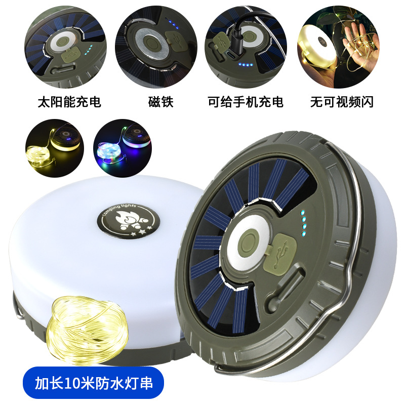 태양 다기능 캠핑 램프 다채로운 문자열 조명 분위기 교수형 텐트 캠핑 램프 야외 조명 충전식 손전등