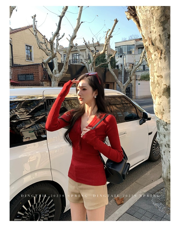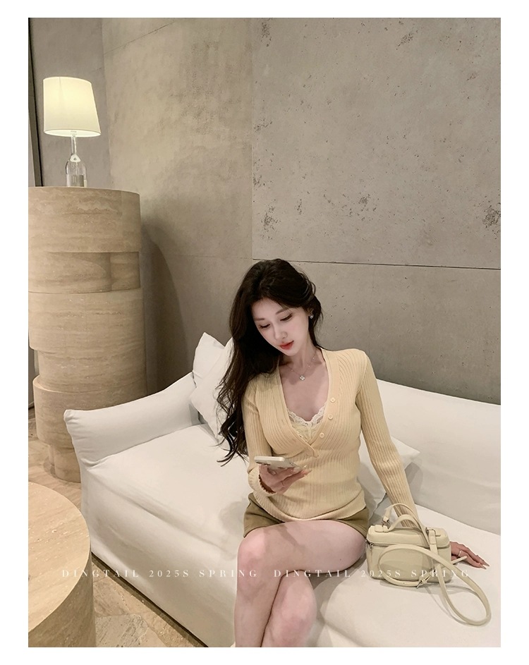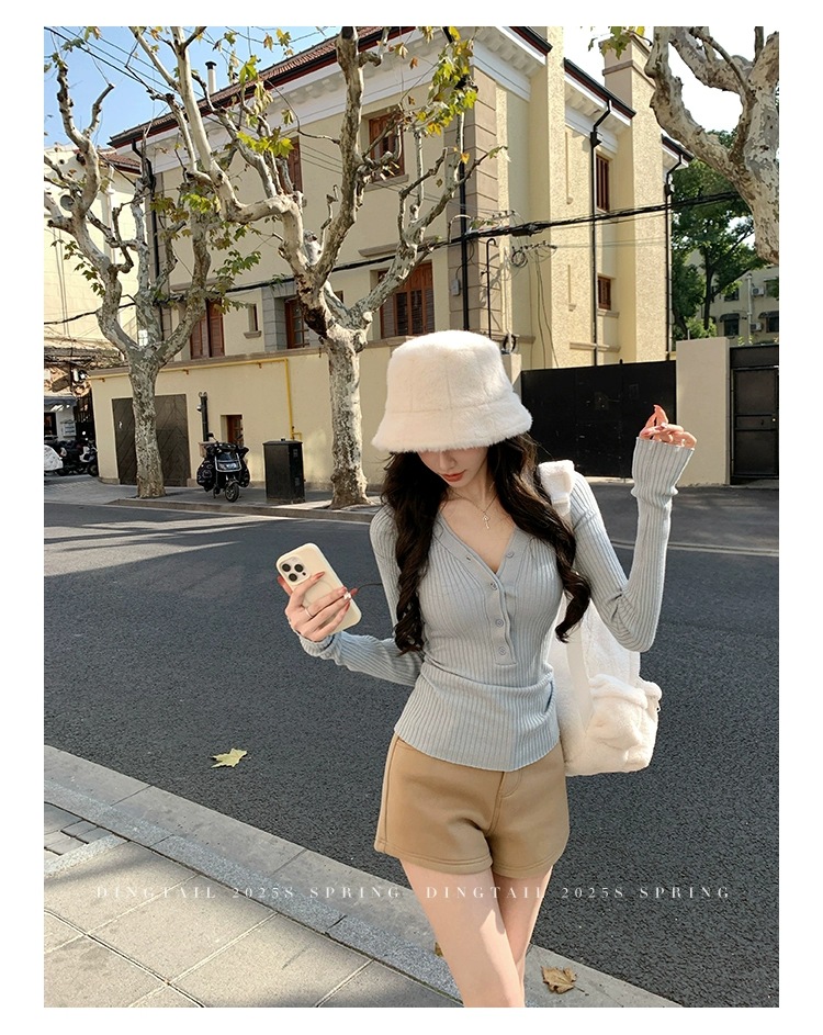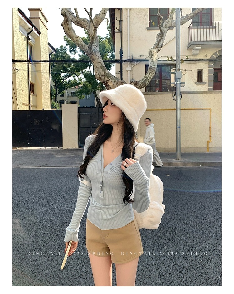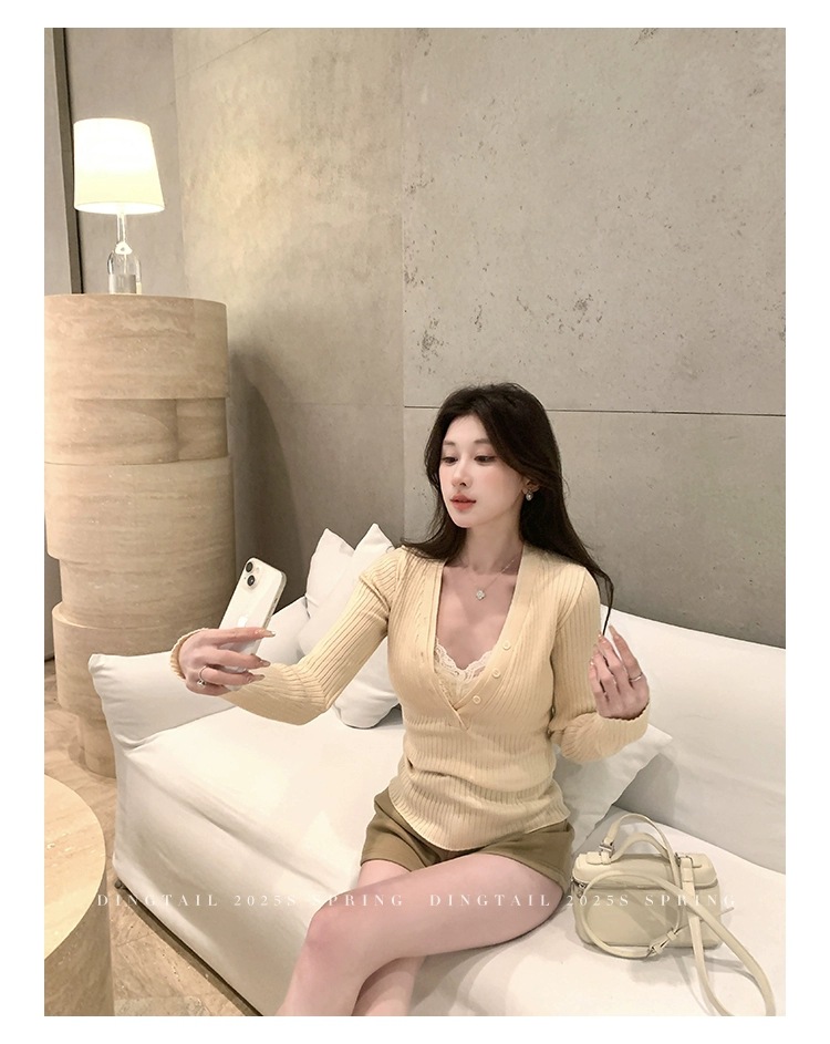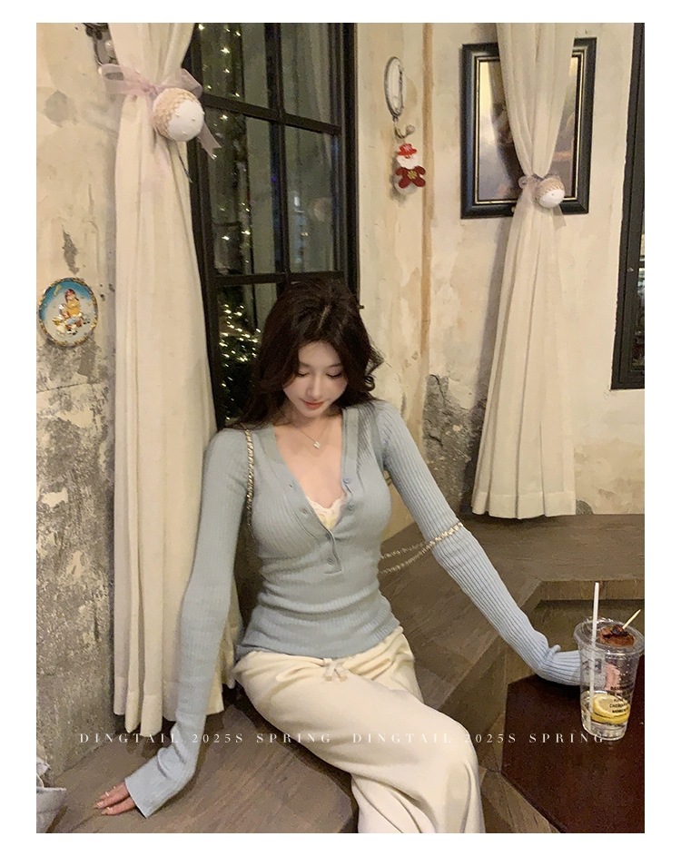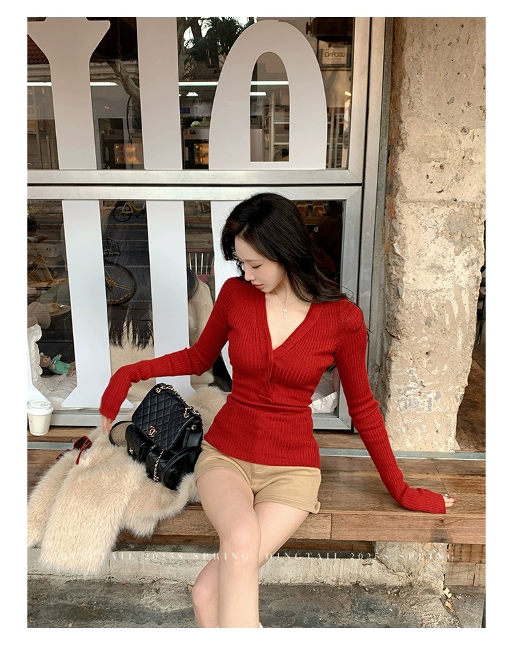 봄, 가을, 겨울 여성용 코어 스펀 원사 브이넥 긴팔 스웨터, 순수한 뜨거운 소녀 슬림 스웨터 슬리밍 보텀 탑스토어 가기