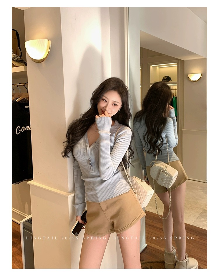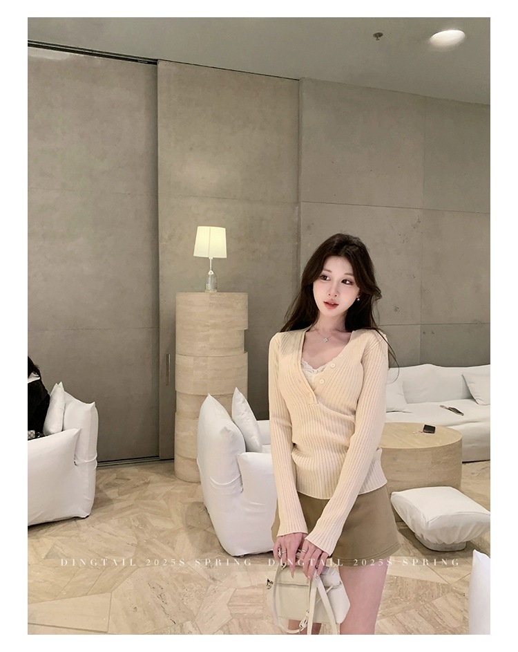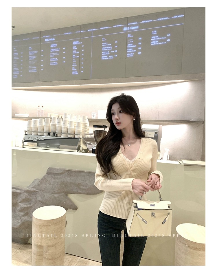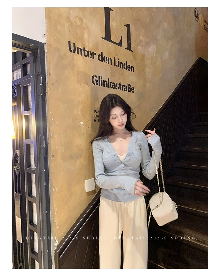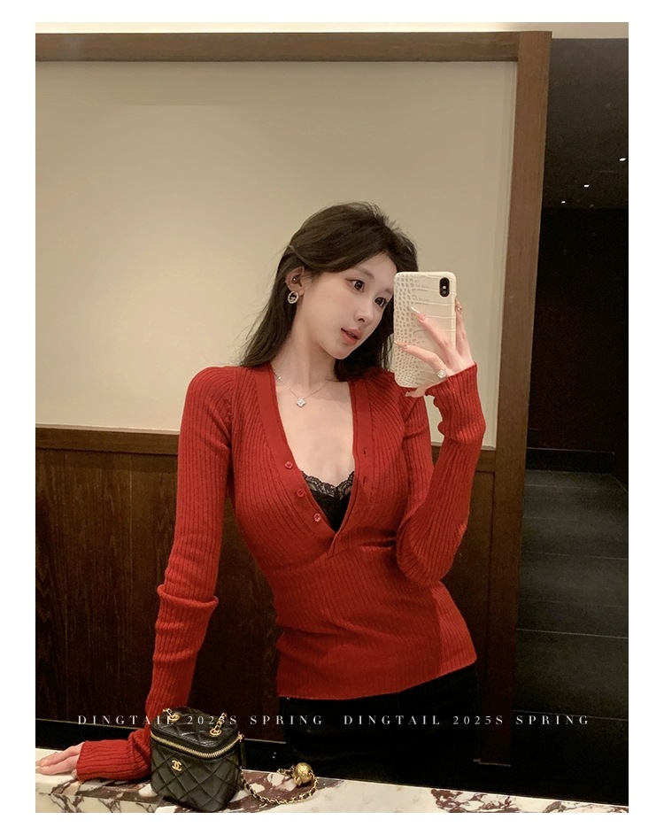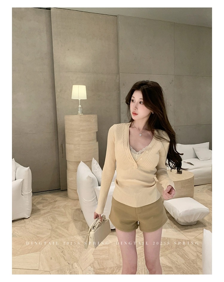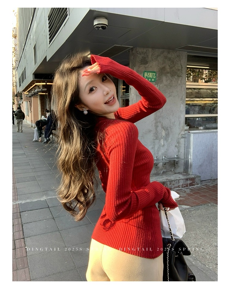 봄, 가을, 겨울 여성용 코어 스펀 원사 브이넥 긴팔 스웨터, 순수한 뜨거운 소녀 슬림 스웨터 슬리밍 보텀 탑스토어 가기