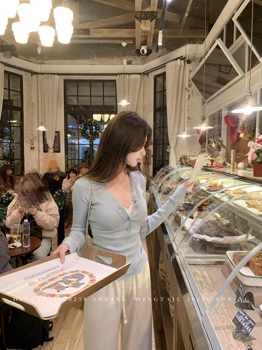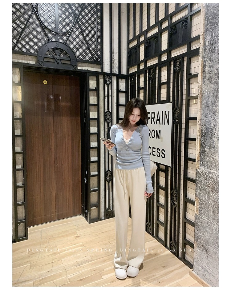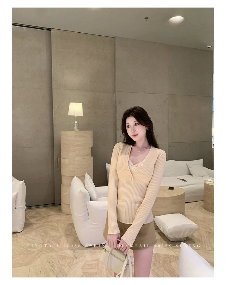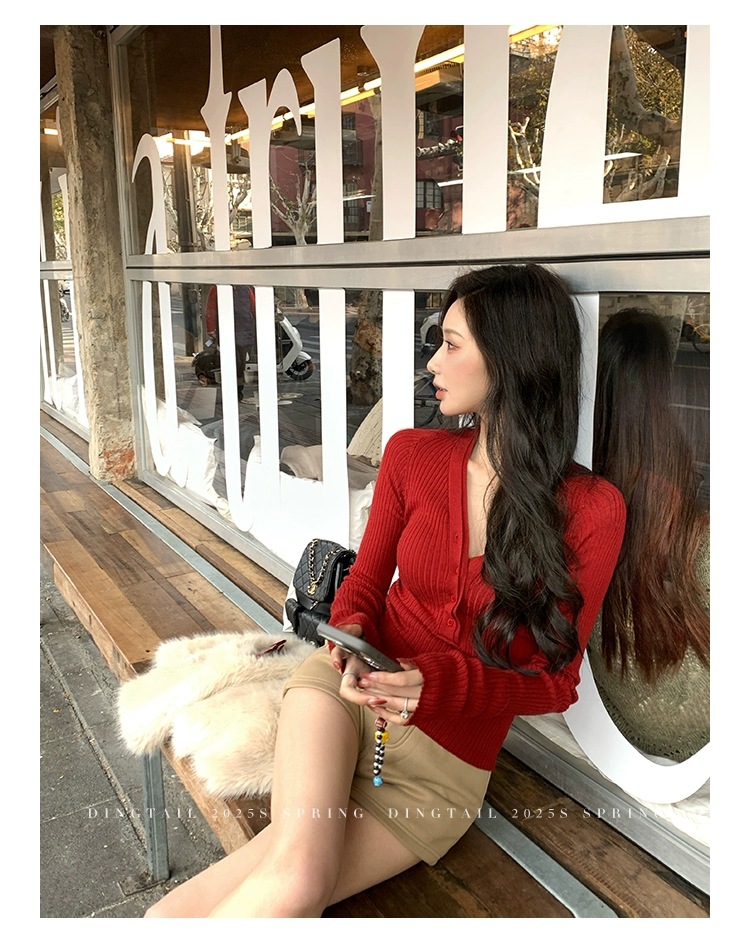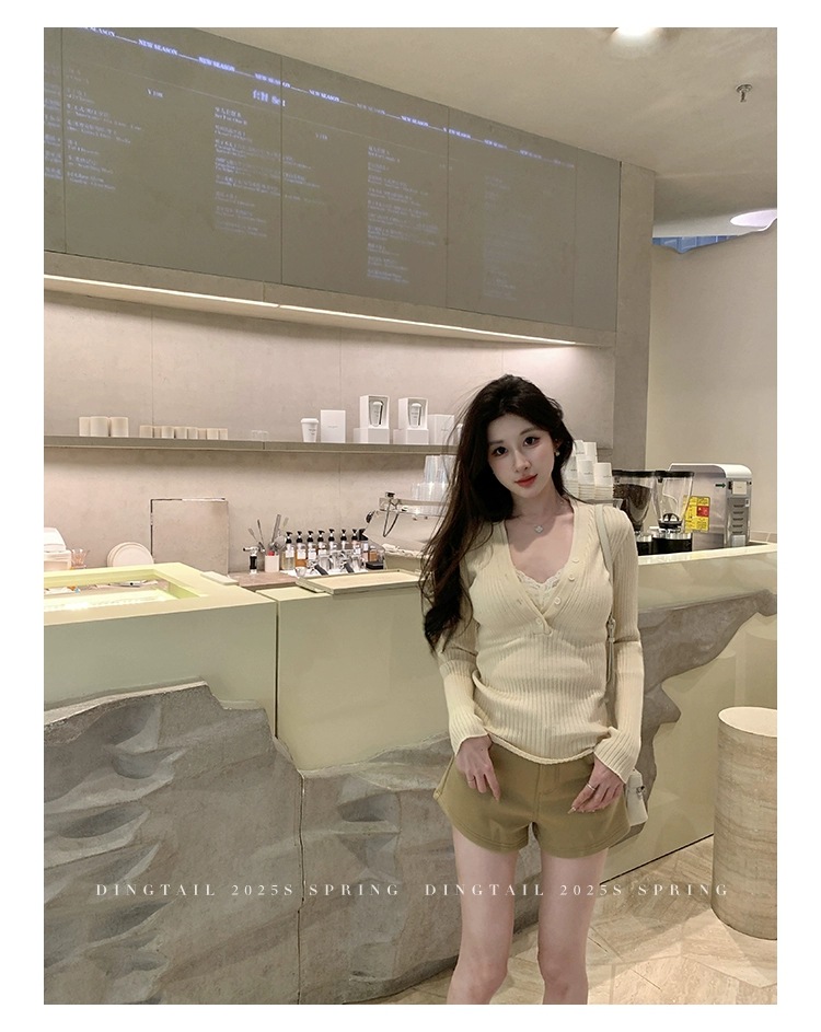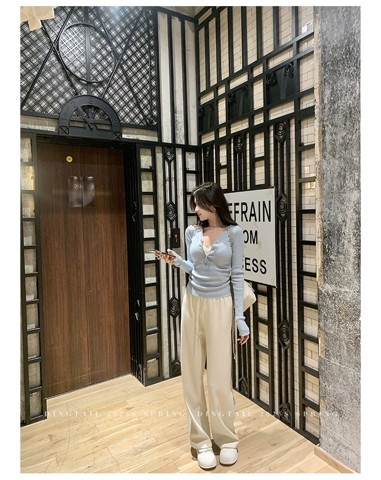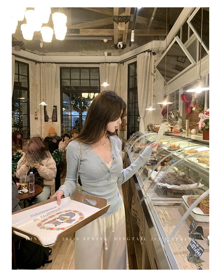 봄, 가을, 겨울 여성용 코어 스펀 원사 브이넥 긴팔 스웨터, 순수한 뜨거운 소녀 슬림 스웨터 슬리밍 보텀 탑스토어 가기
