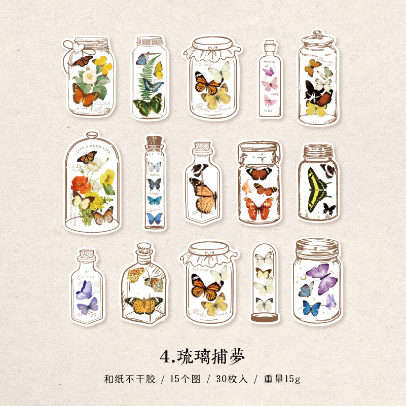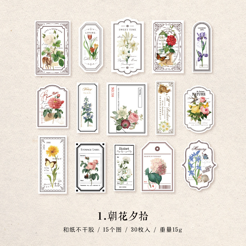 Yanji 꽃다발 같은 사랑 시리즈 핸드북 스티커 복고풍 꽃 일러스트 라벨 일기 재료 스티커 30장