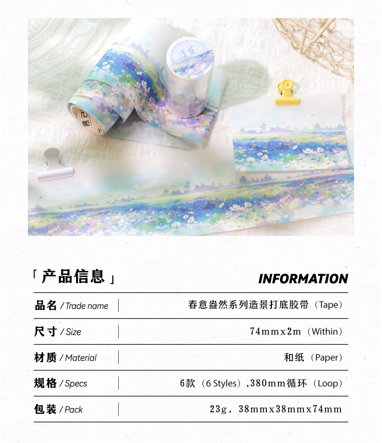 Yanji의 봄 시리즈 테이프 조경 베이스 핸드북 장식 콜라주 유럽식 식물 장식 신선한 6가지 스타일