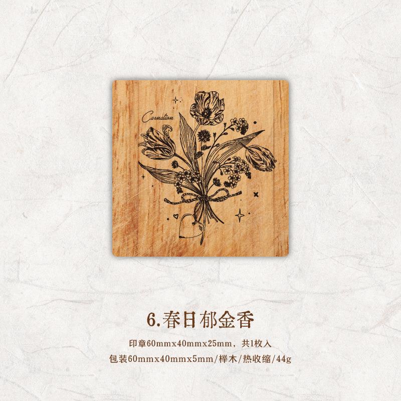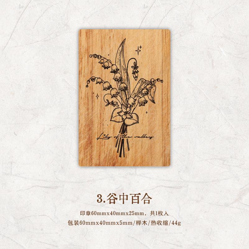 Yanji Shanye Yunwu 시리즈 단단한 나무 스탬프 복고풍 꽃 핸드북 DIY 장식 인쇄 6가지 스타일 1개스토어 가기