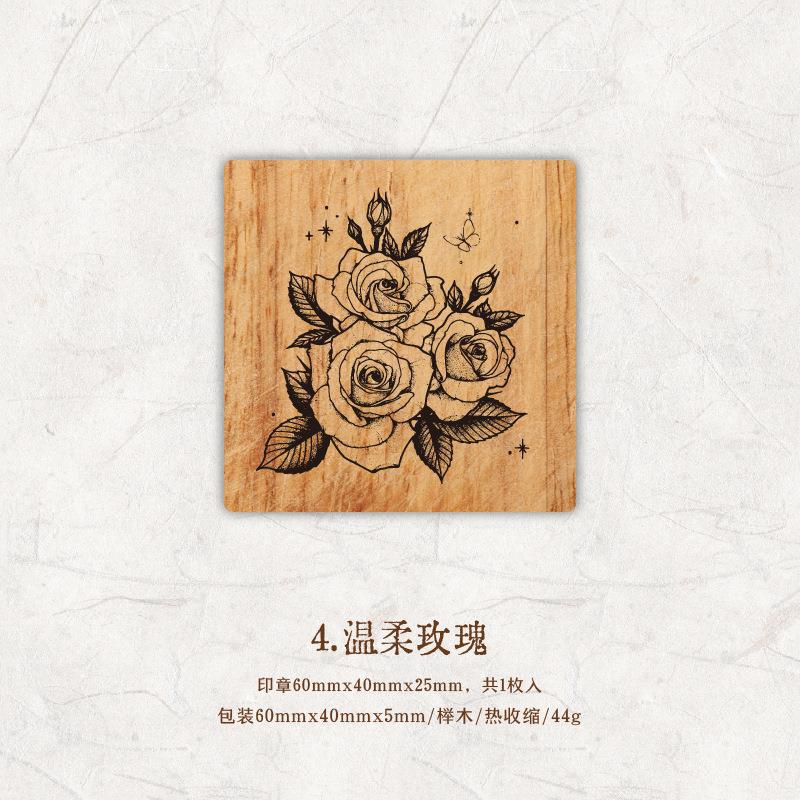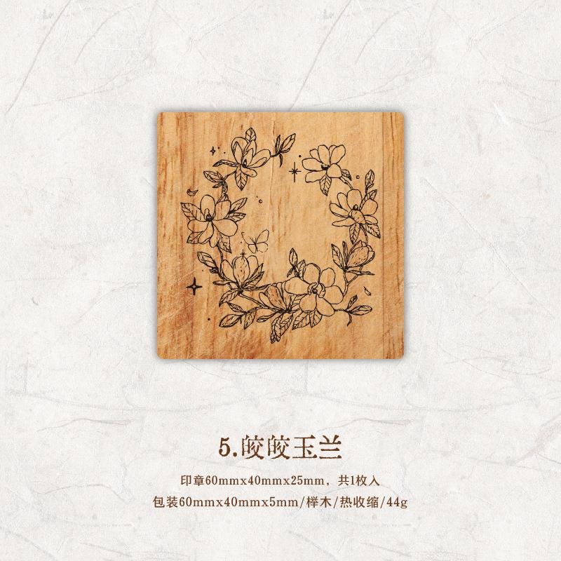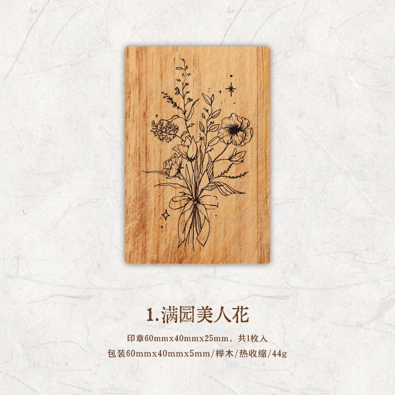 Yanji Shanye Yunwu 시리즈 단단한 나무 스탬프 복고풍 꽃 핸드북 DIY 장식 인쇄 6가지 스타일 1개