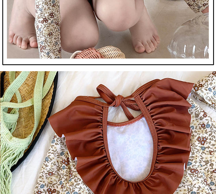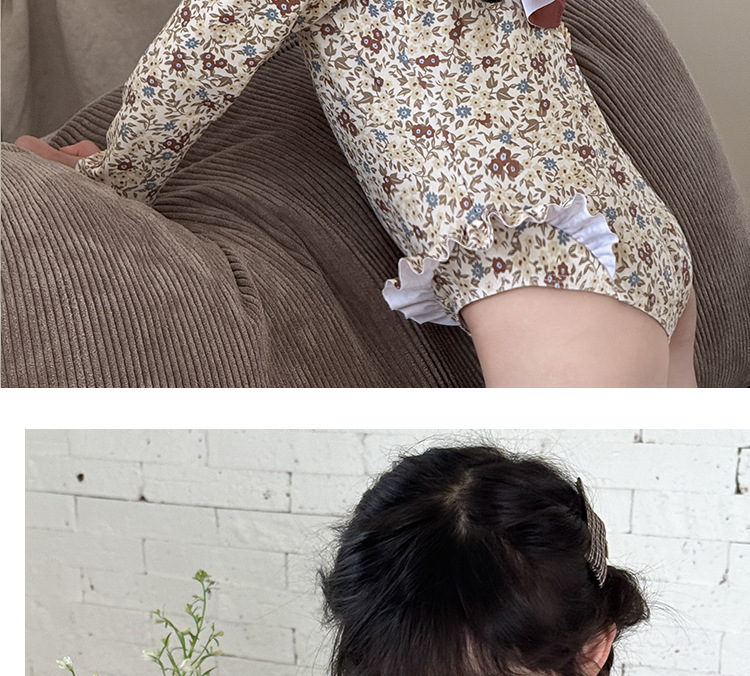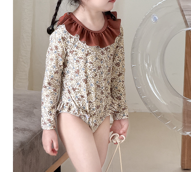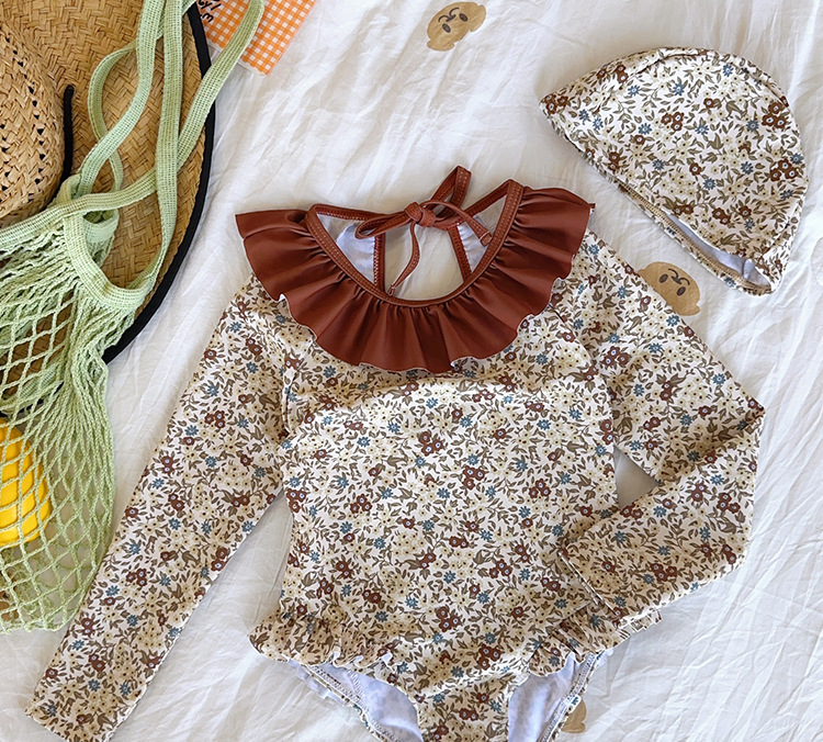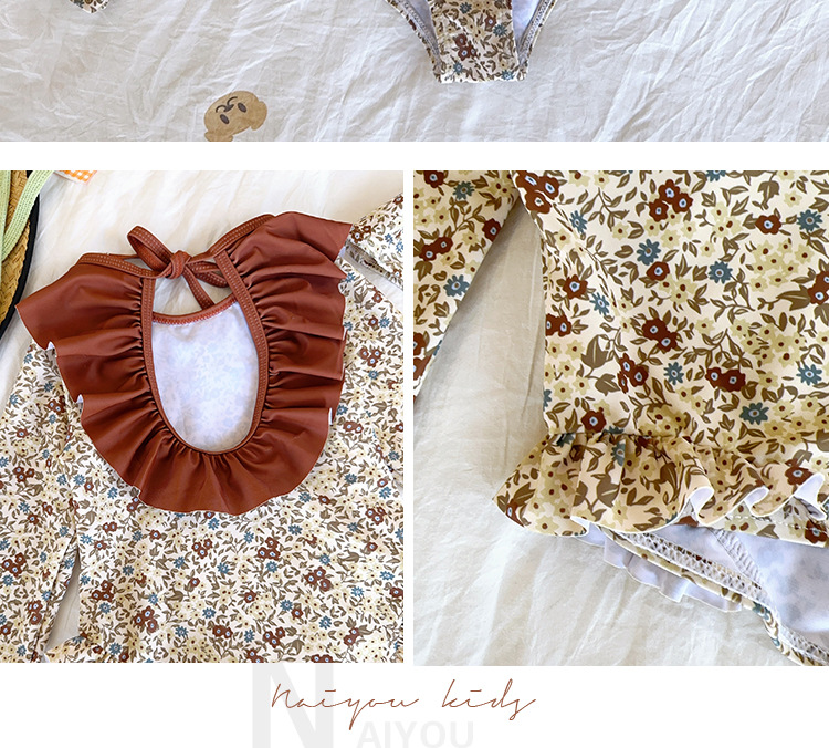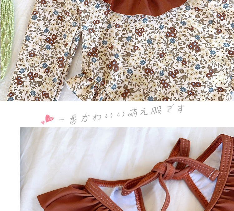 여아 스플릿 수영복, 긴팔 자외선 차단제, 아동용 수영복, 레이스, 귀여운 꽃무늬 여아 속건성 백리스 베이비 수영복
