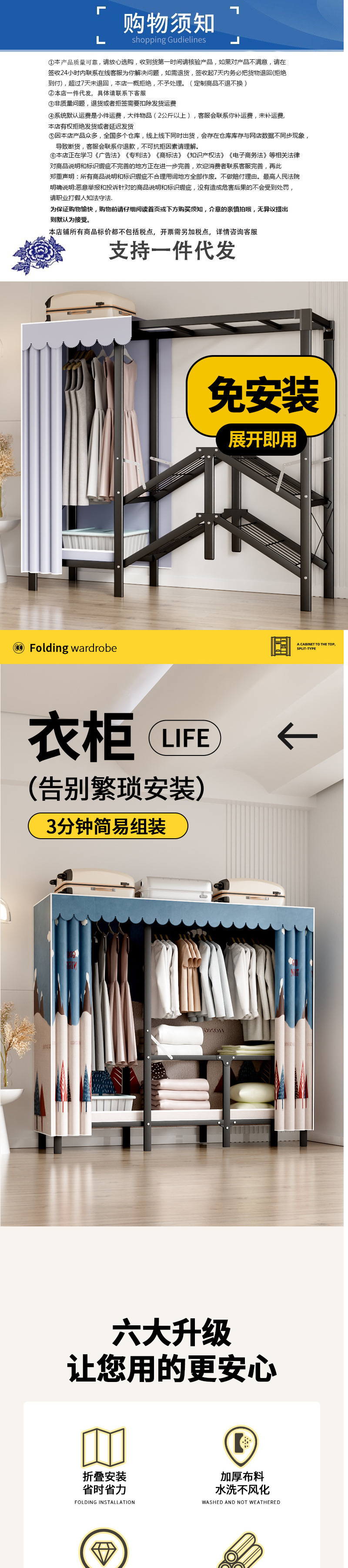 수납 침실 임대 새 모델 2025 기숙사 접이식 간단한 가정용 옷장 설치가 필요 없고 튼튼하고 내구성이 뛰어납니다.스토어 가기
