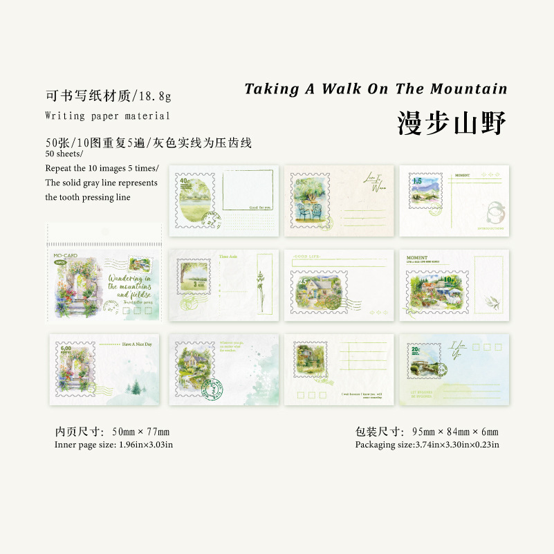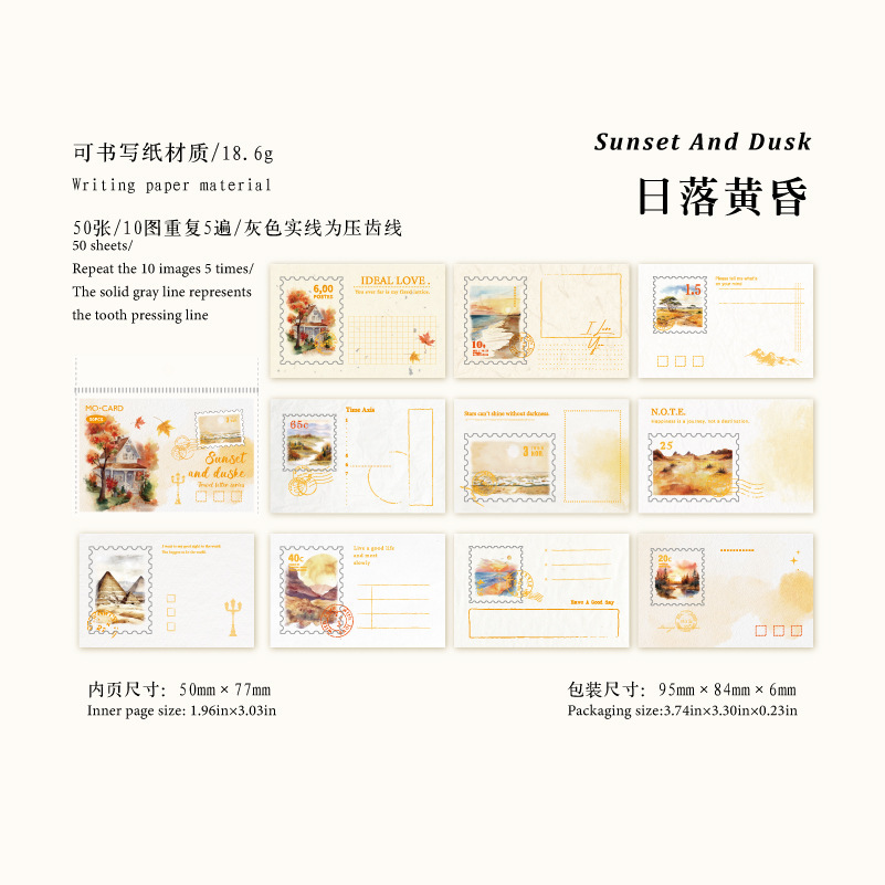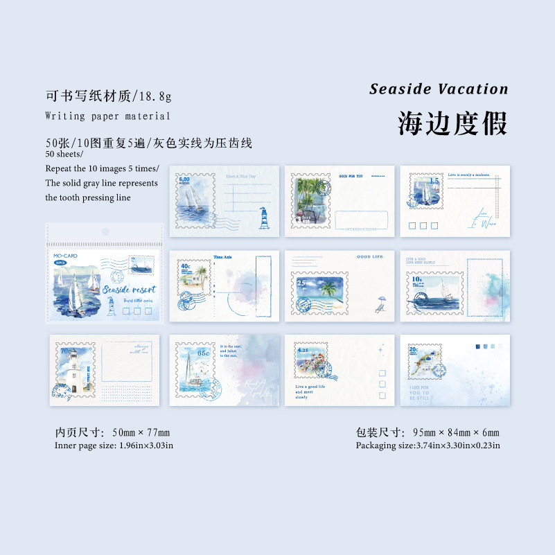 모모 여행편지 시리즈 노트패드 50개 우표 테마 수첩 DIY 재료 [국경 간 장기 모델]