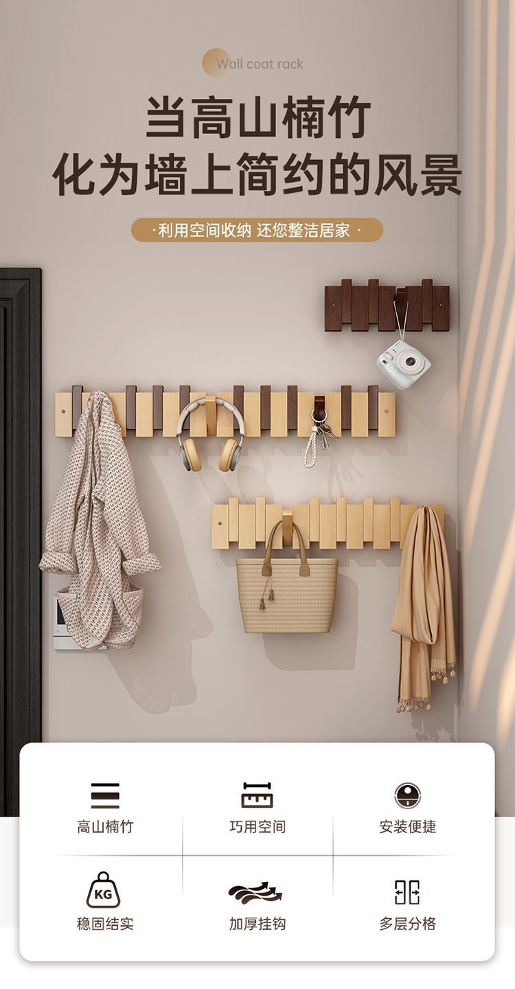 피아노 건반 옷걸이, 벽걸이 옷걸이, 현관문 걸이, 침실 원목 펀치 없는 옷걸이스토어 가기