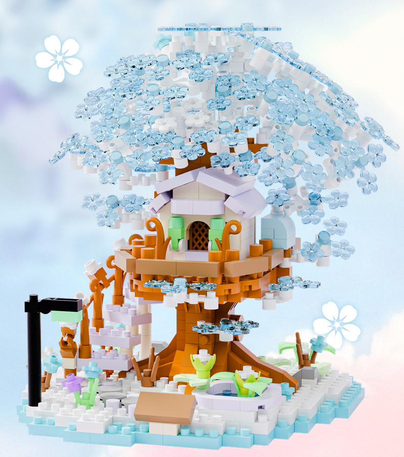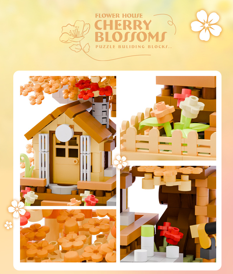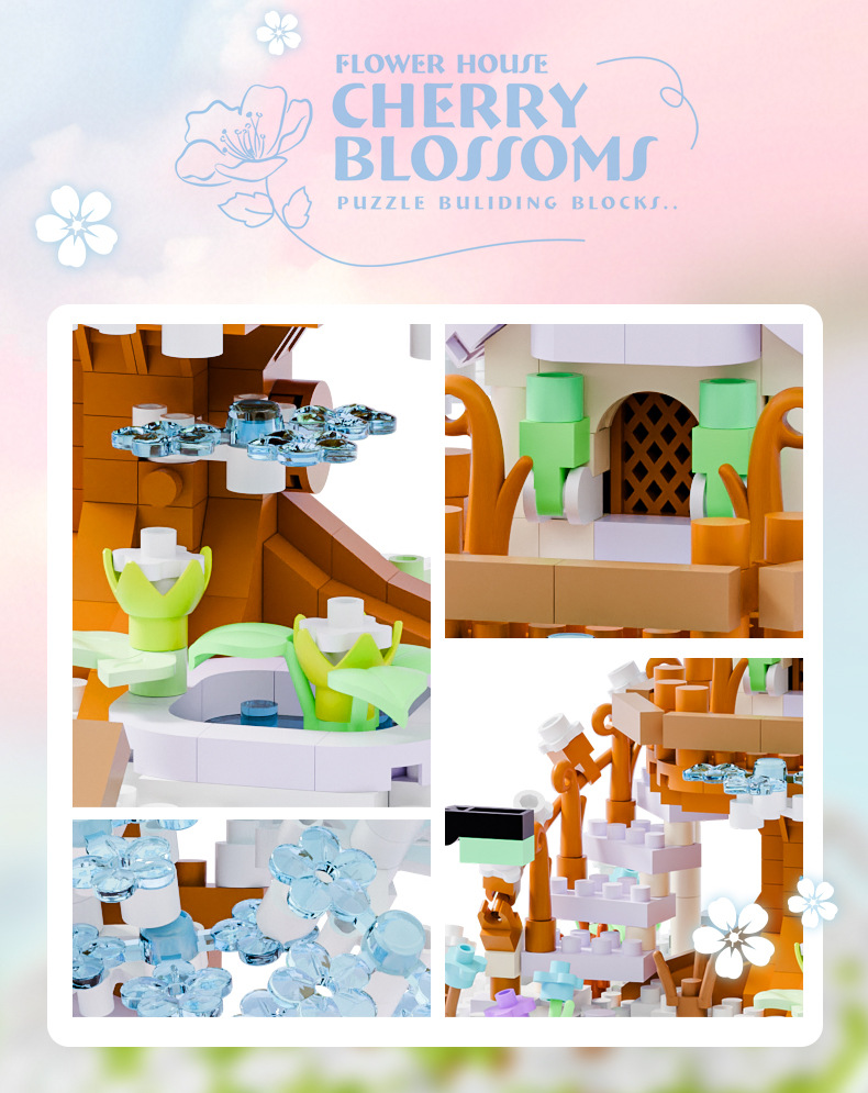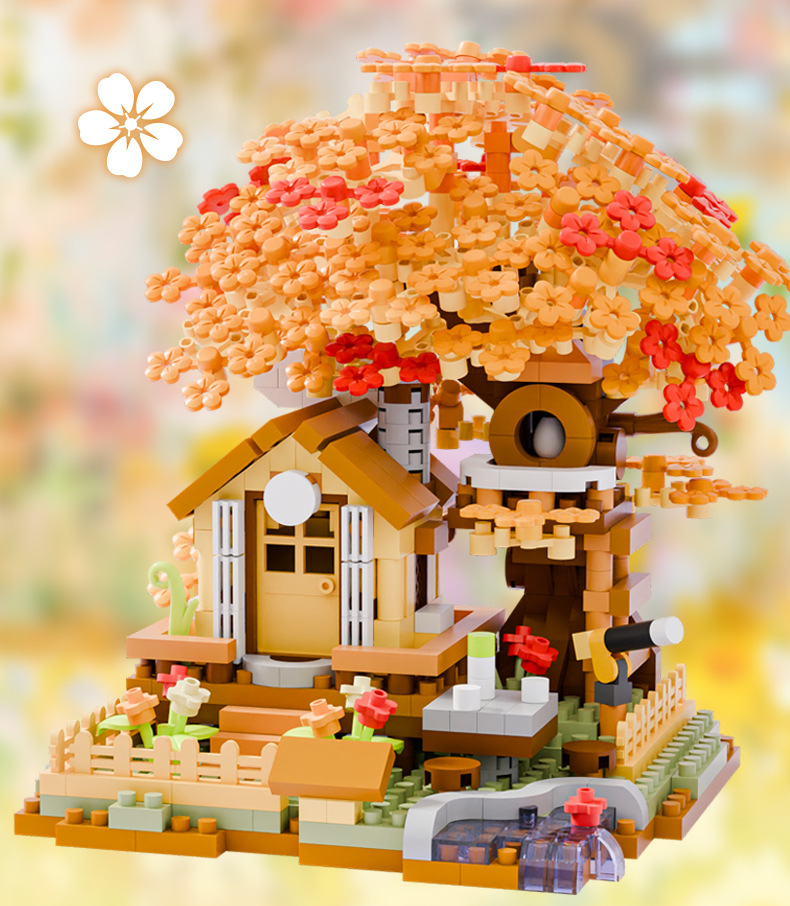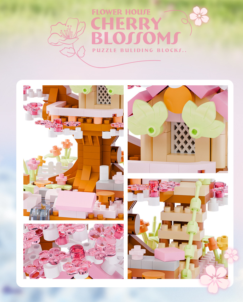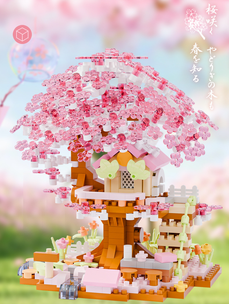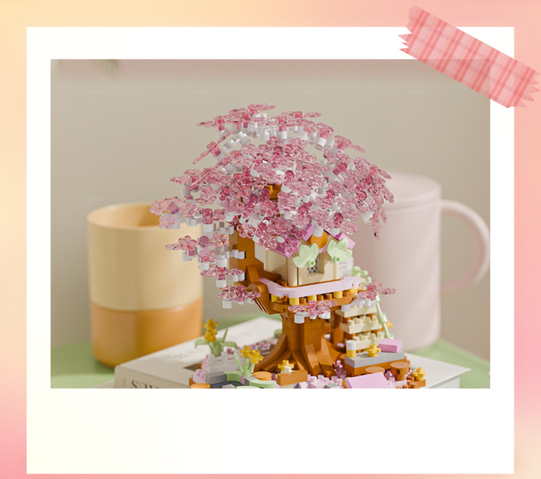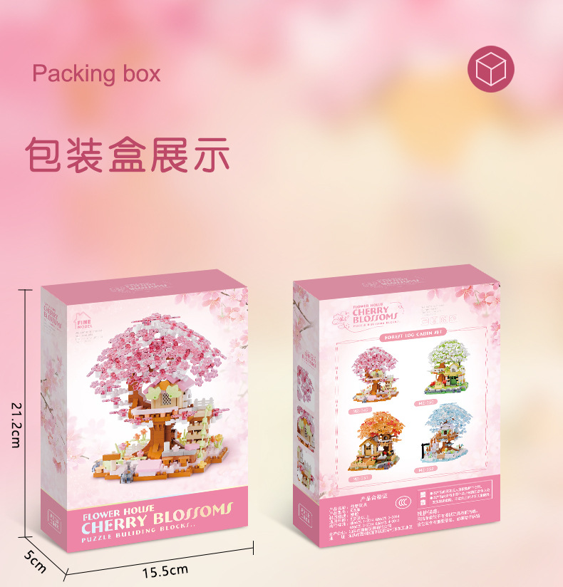 벚꽃 나무집 블록은 레고와 호환되며, 어린이 교육용 조립 장난감, 탁상 장식품, 선물, 조립식 교육용 블록입니다.스토어 가기