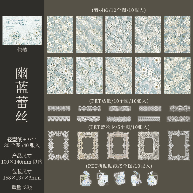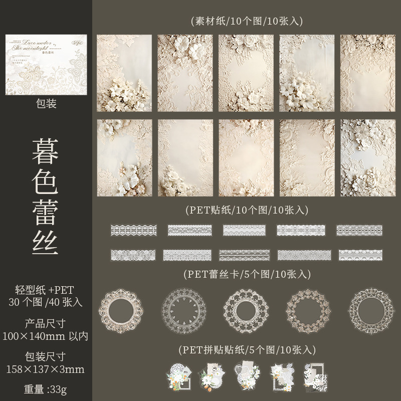 달빛 레이스 시리즈 토마토 소스 소녀 소재 팩 레이스 테마 핸드북 소재 40장 4가지 스타일