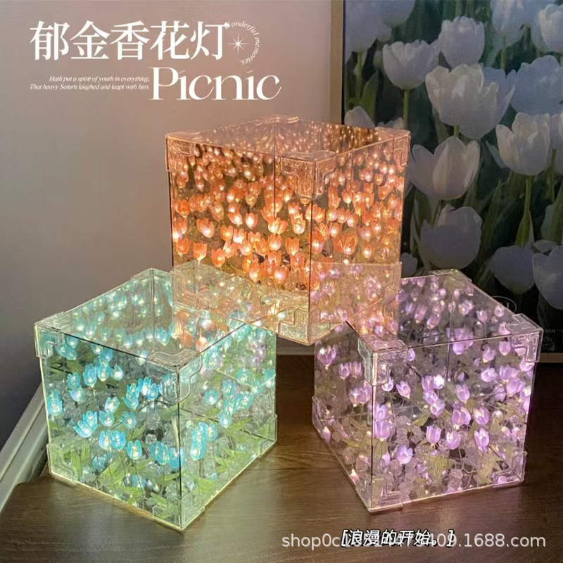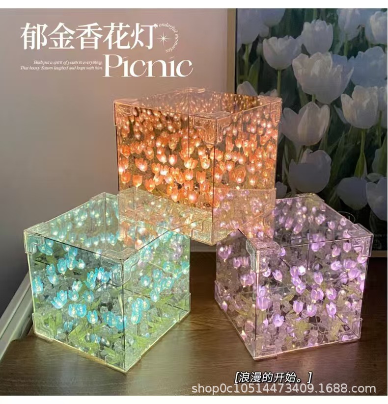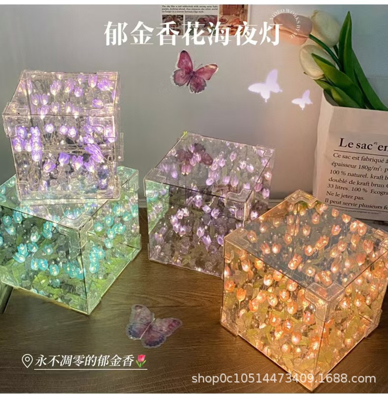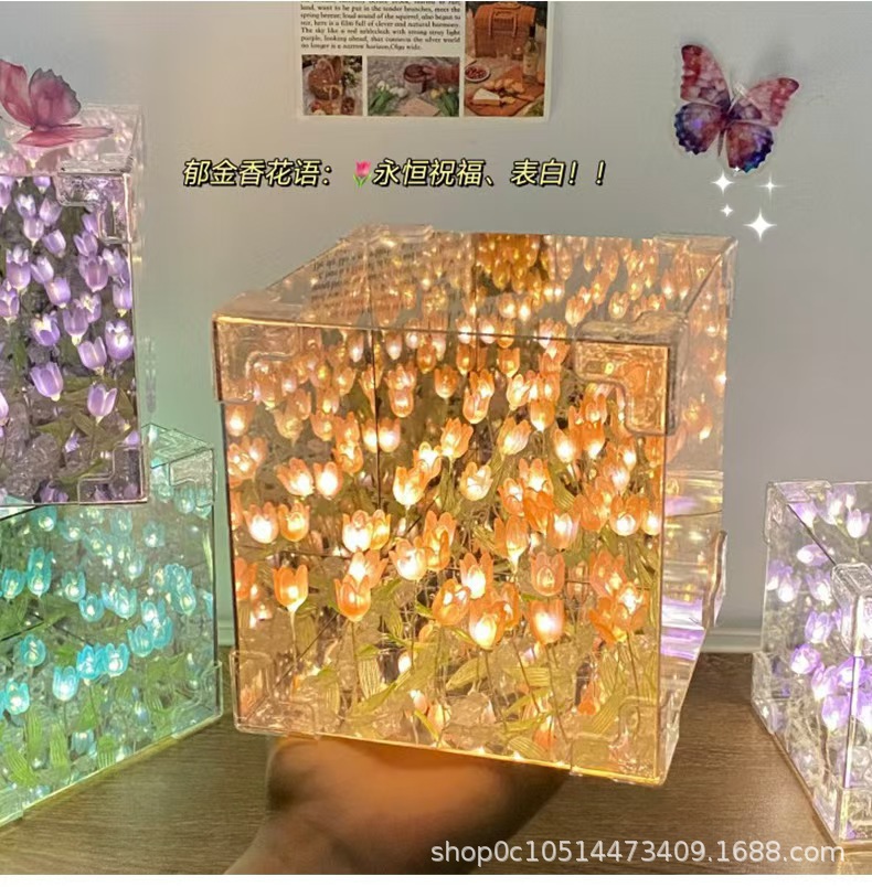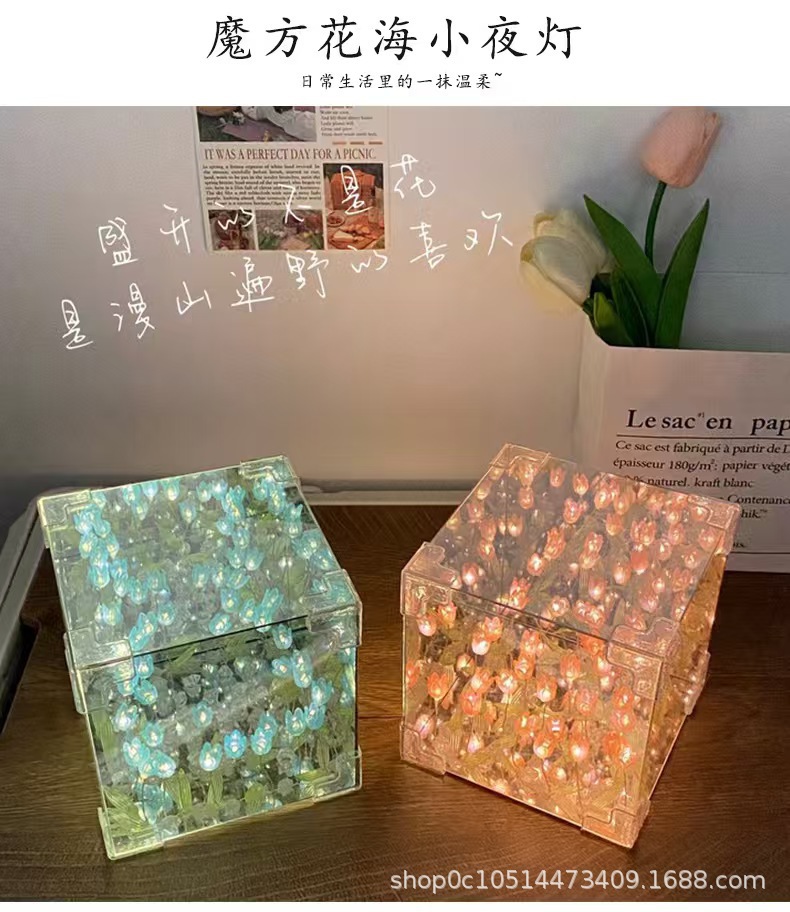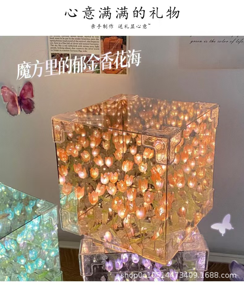 튤립 꽃바다 큐브 야간등 수제 DIY 재료 패키지 여자친구와 커플을 위한 중국 발렌타인데이 선물스토어 가기