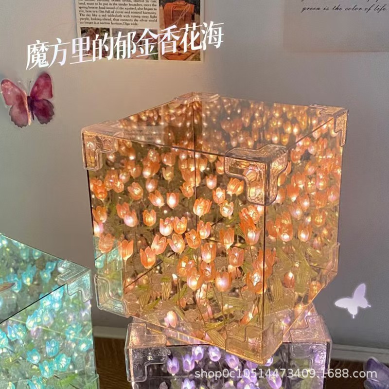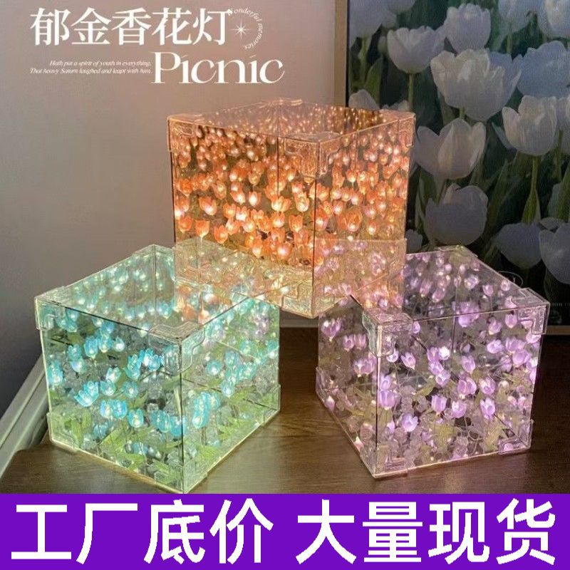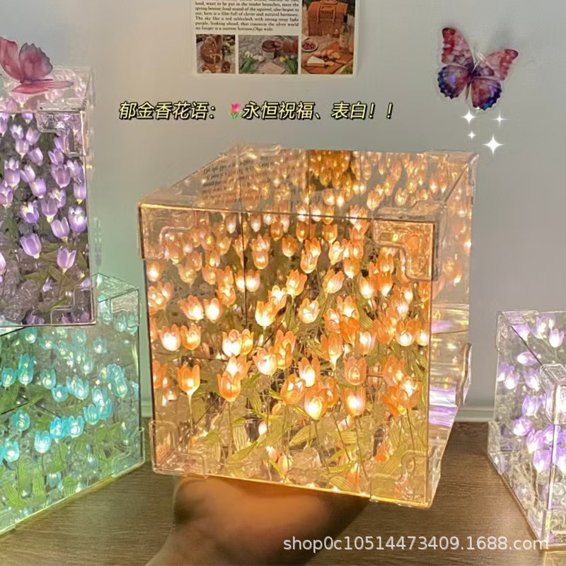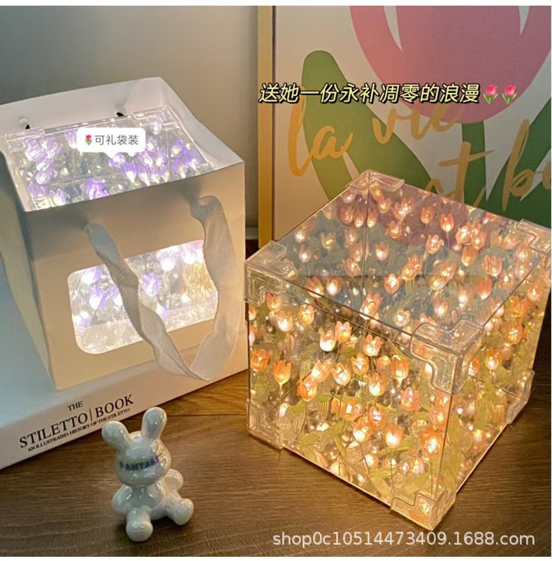 튤립 꽃바다 큐브 야간등 수제 DIY 재료 패키지 여자친구와 커플을 위한 중국 발렌타인데이 선물