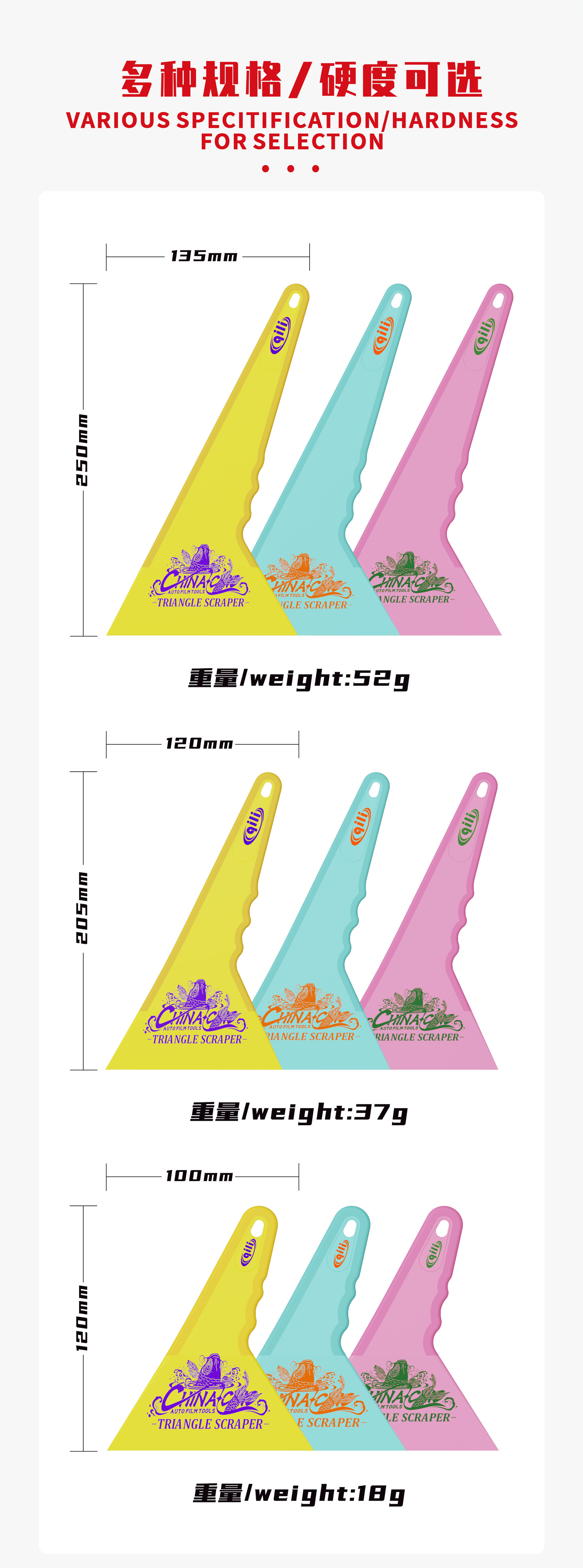 Qili 자동차 필름 도구 OEM 맞춤형 초박형 고온 방지 삼각형 스크레이퍼 창 필름 건설 삼각형 하드 스크레이퍼