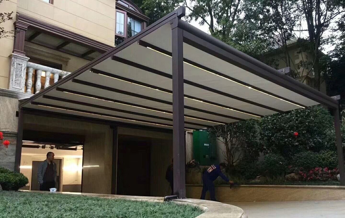 빌라 안뜰 개폐식 차양 지붕 야외 차양 테라스 자동 전기 접이식 캐노피 출구