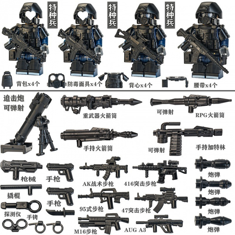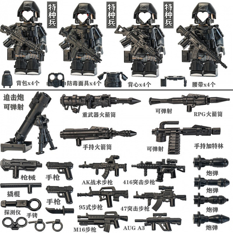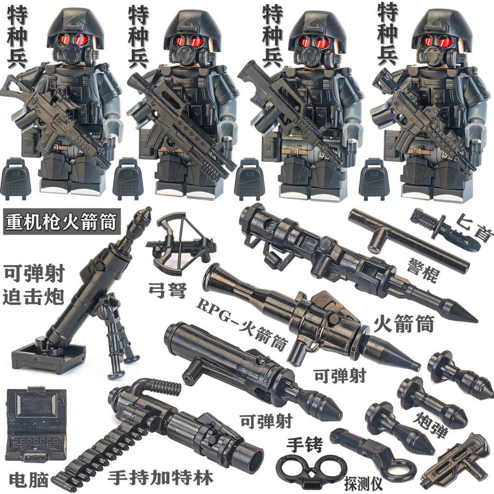 레고 빌딩 블록 특수 부대 미니피규어 경찰 군인 군인 무기 박격포 조립 소년 장난감과 호환 가능
